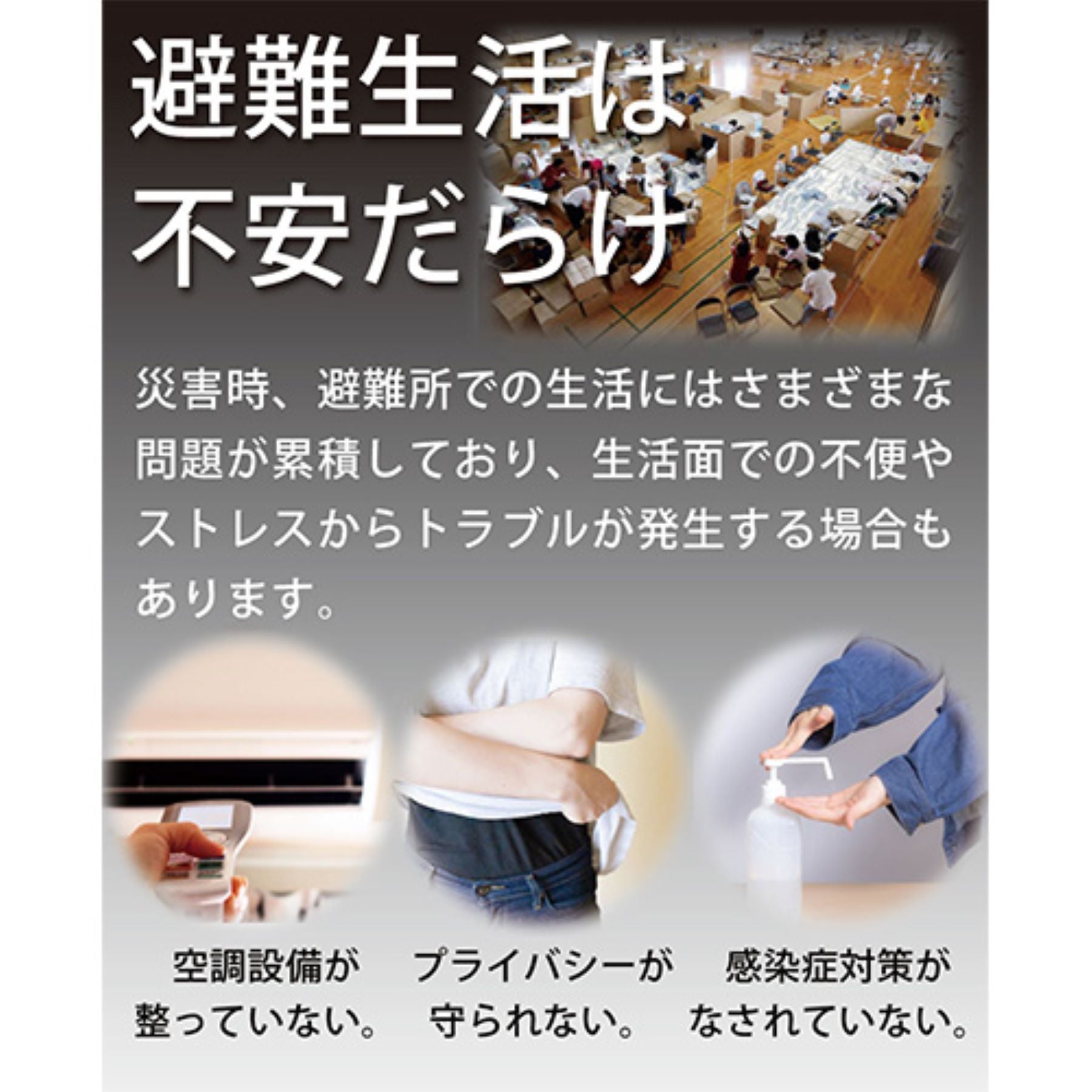 ●災害時、避難所の生活では、プライバシーが守られない・感染症対策がなされていないなど問題が蓄積しています。そんな避難生活を快適にサポートしてくれる3~4人用の災害避難テント。