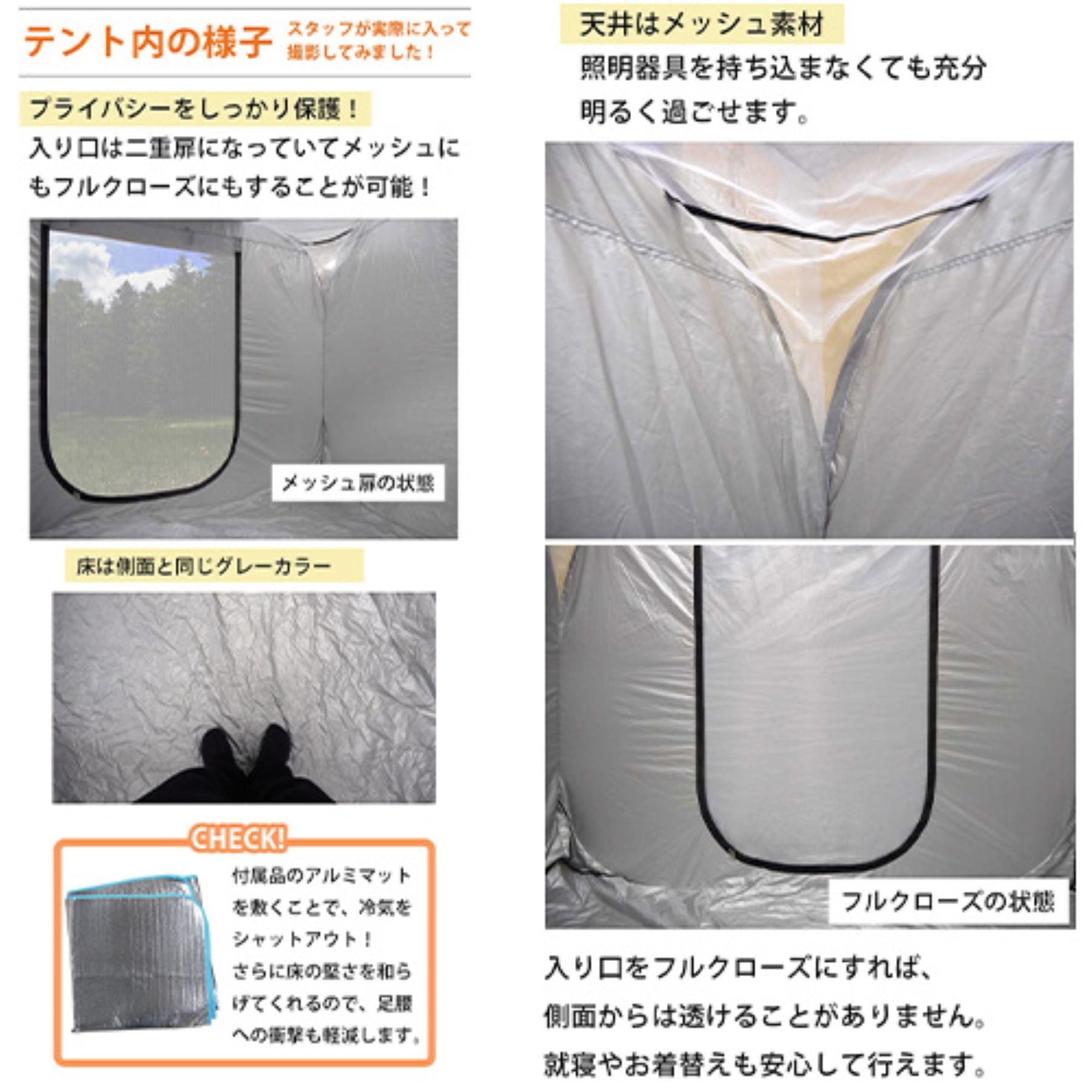 避難用プライベートテント ワンタッチ簡単設置 大型3~4人用 天井ファスナー付