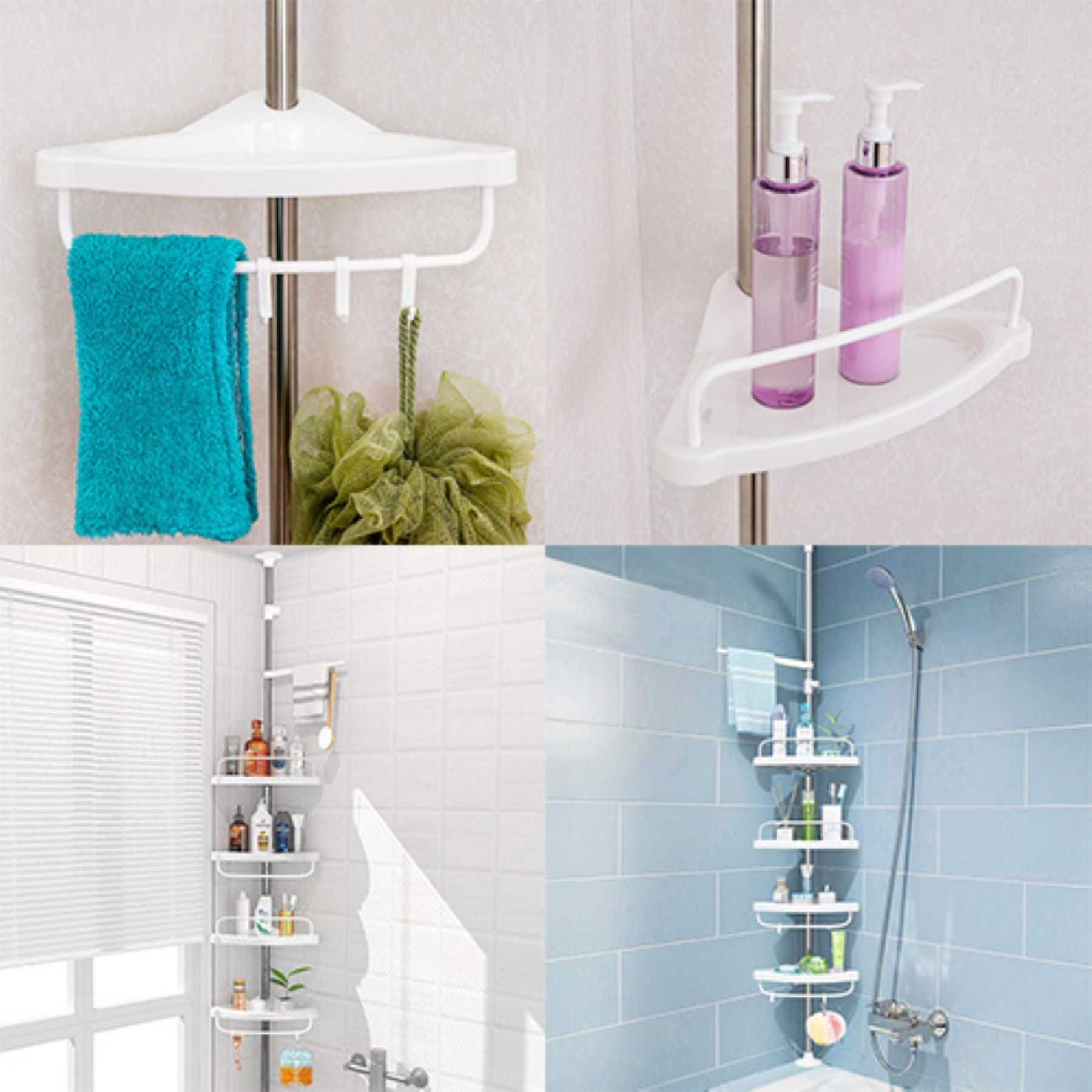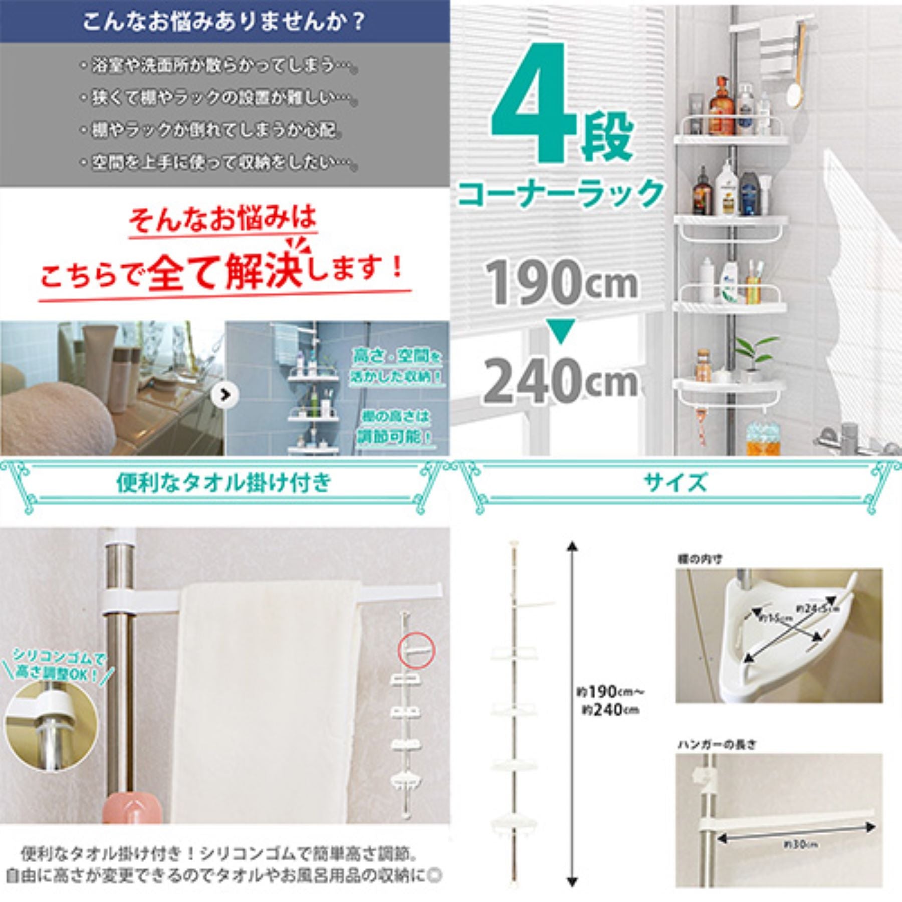 4段突っ張りコーナーラック 190~240cm高さ調節可 耐荷重2KG 設置簡単