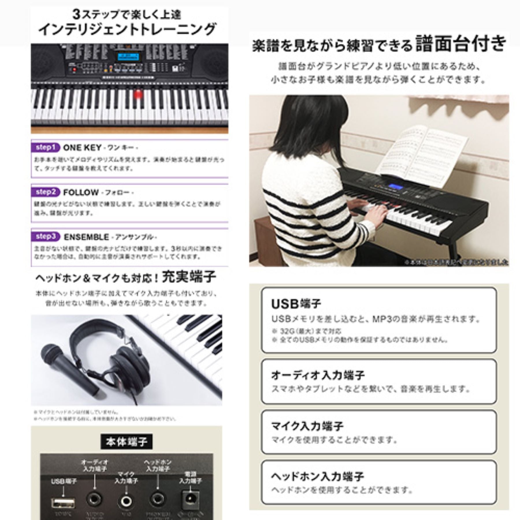 ●学びながら弾けるトレーニング機能付きで、練習にもピッタリです。