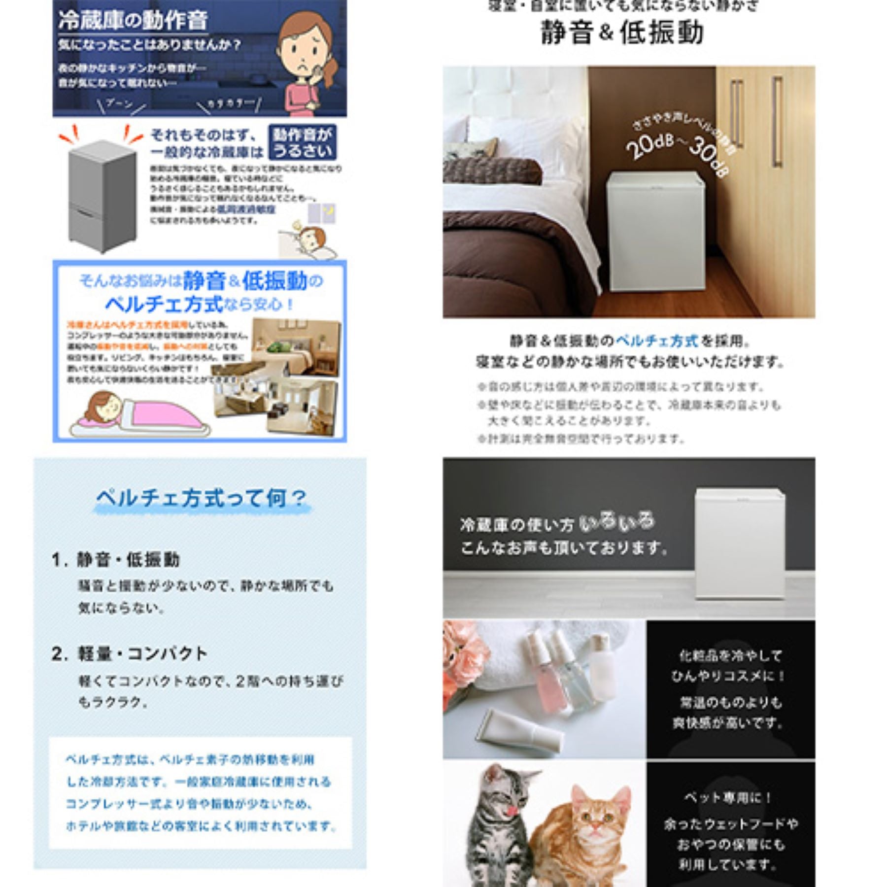●ペルチェ式とはペルチェ素子の熱移動利用した冷却方式。駆動部分が少なく静音性に優れ、コンパクトで庫内スペースを広く取れるのが特長です。※庫内冷気循環、放熱にファンを利用していますので、完全な無音運転はできません。