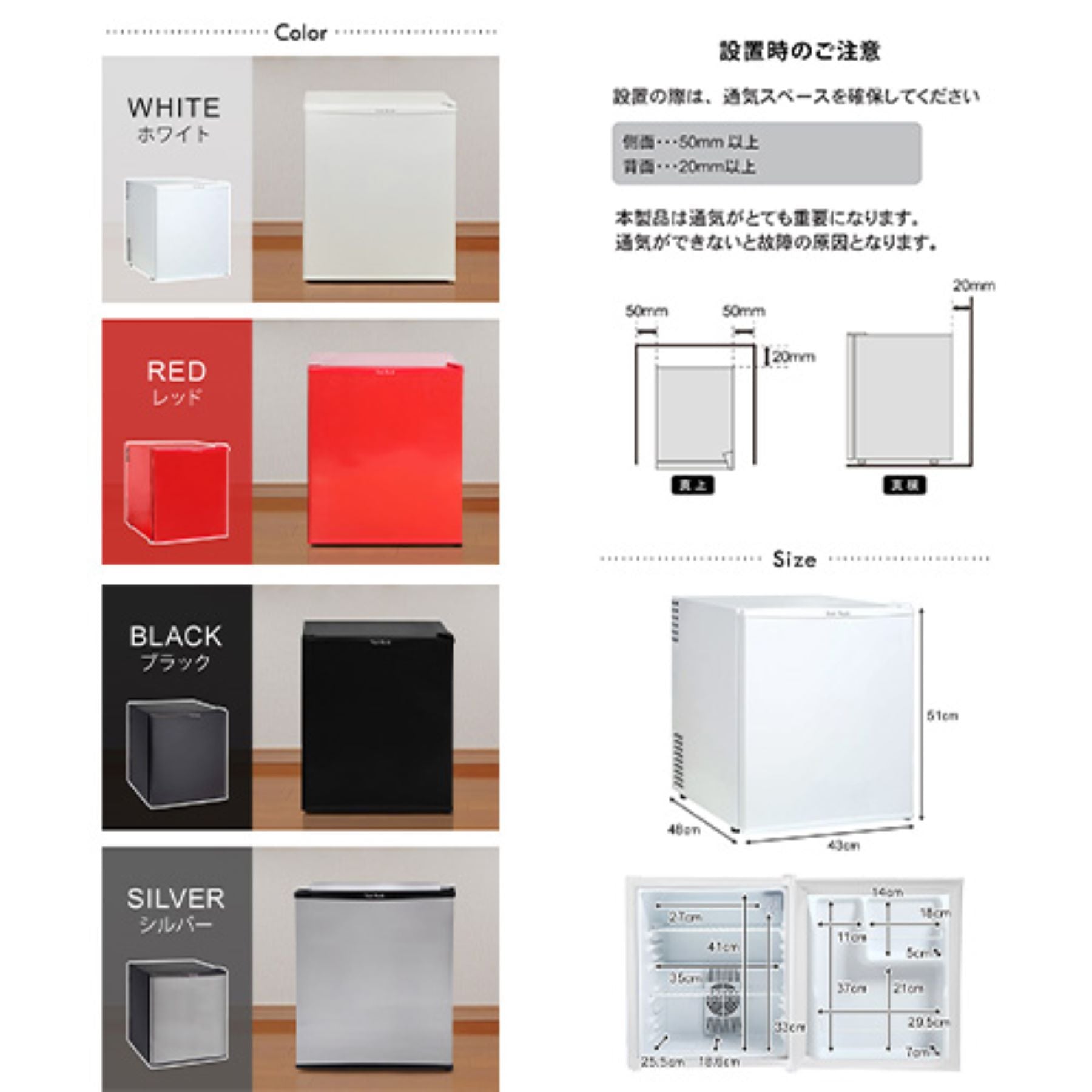 ミニ冷蔵庫 48L ペルチェ式 無音 3段階温度調節 仕切り棚の調節可 BK