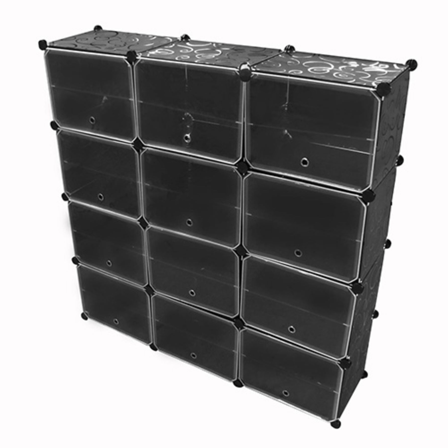 組立式シューズボックス 組替自由 工具不要 扉付 最大48足 多用途 ブラック