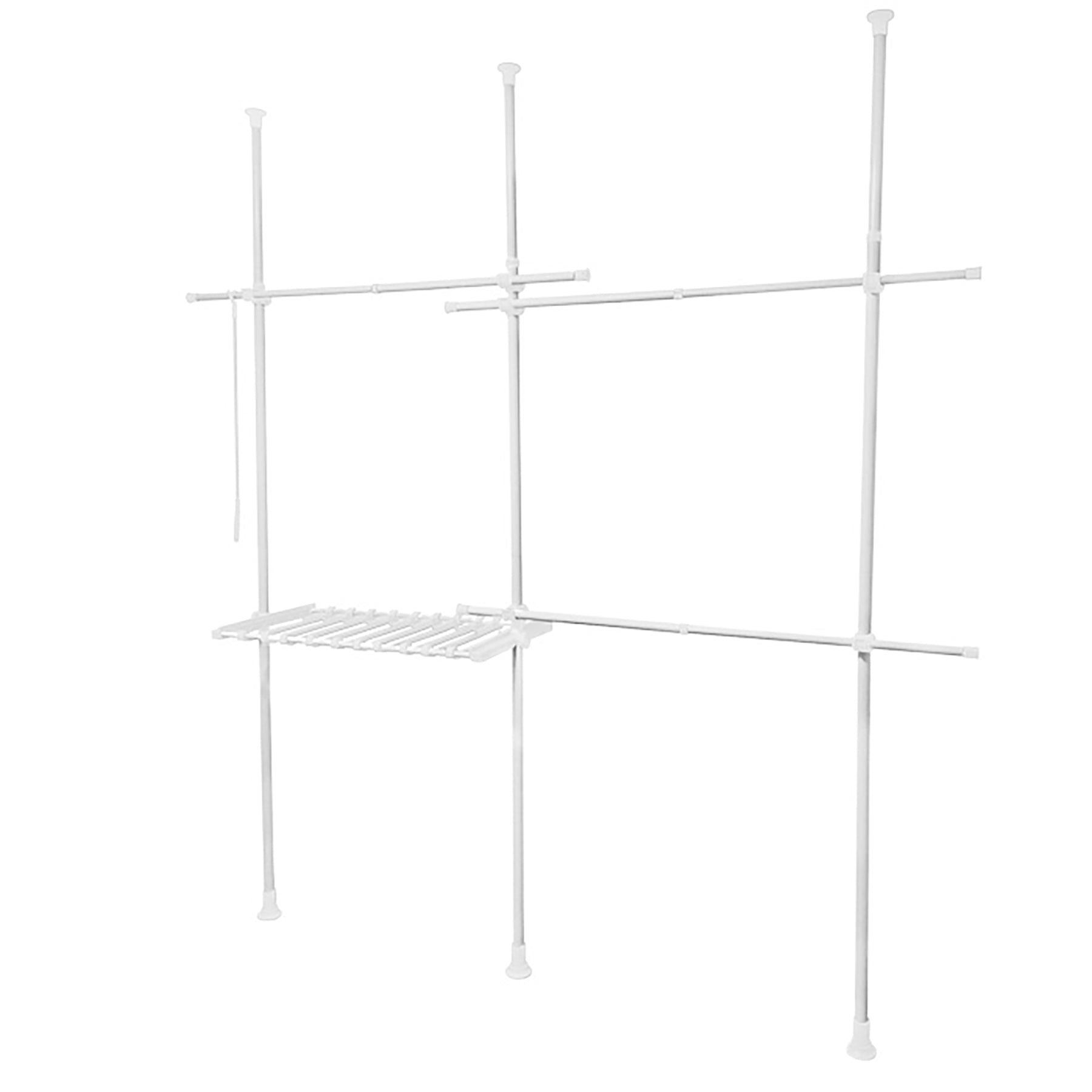 ●空間を有効活用した収納。縦のスペースを活用し無駄なくスッキリ収納。洗濯ハンガーの掛けられない部屋やベランダのない住宅でも設置ができ、衣類の洗濯、収納の幅が広がります。