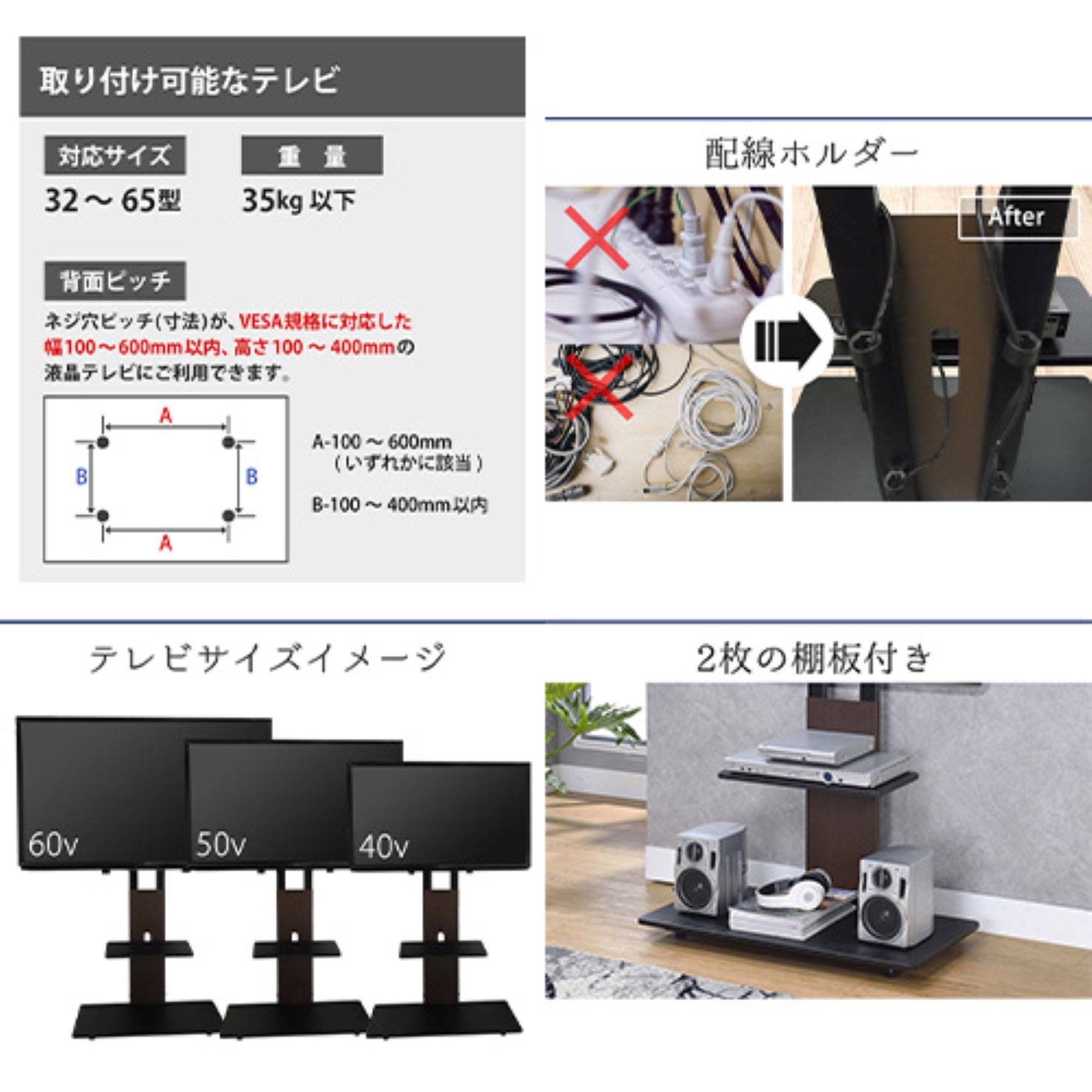 テレビスタンド 壁寄せハイタイプ 32型~65型対応 工事不要 高さ調節可 DW