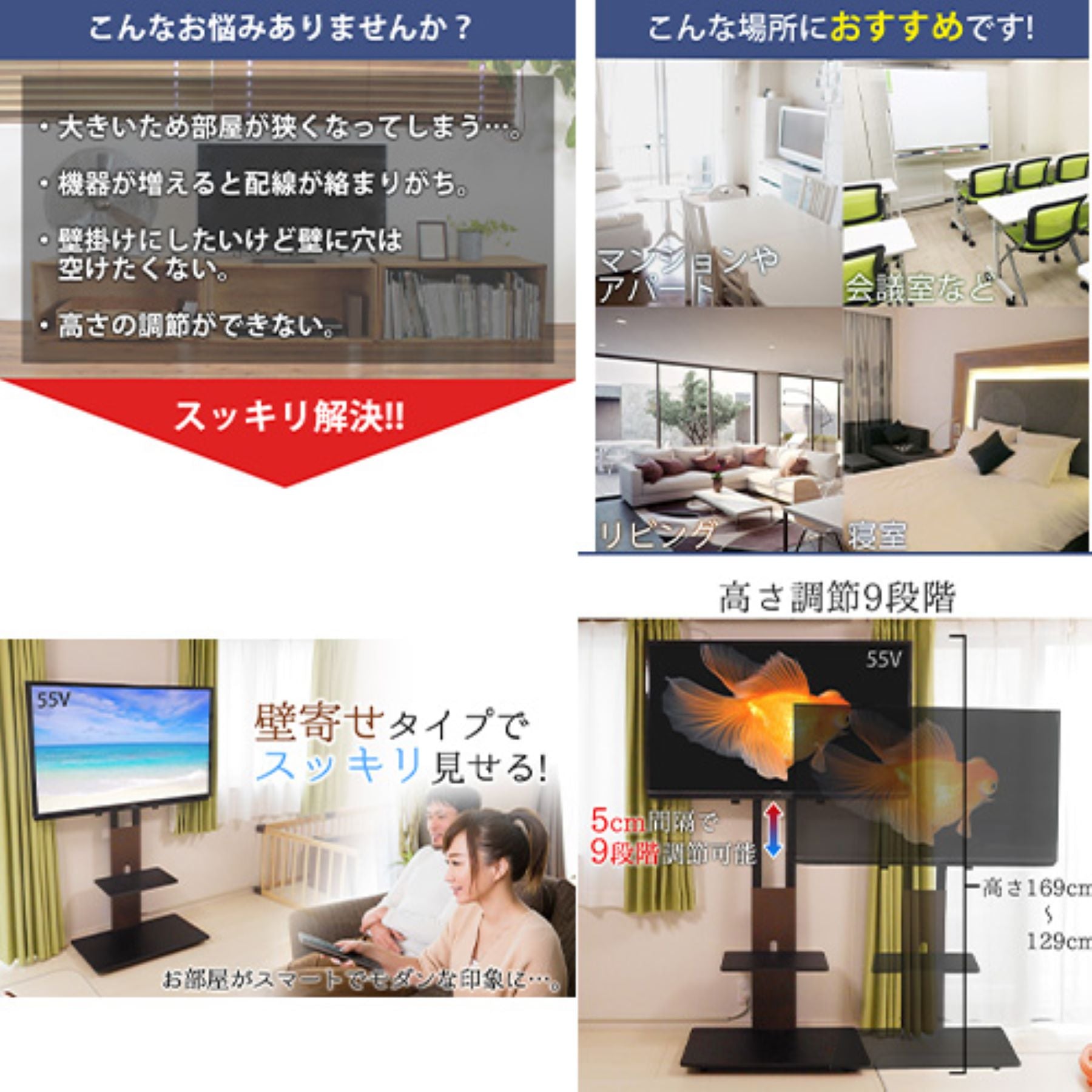 テレビスタンド 壁寄せハイタイプ 32型~65型対応 工事不要 高さ調節可 WH