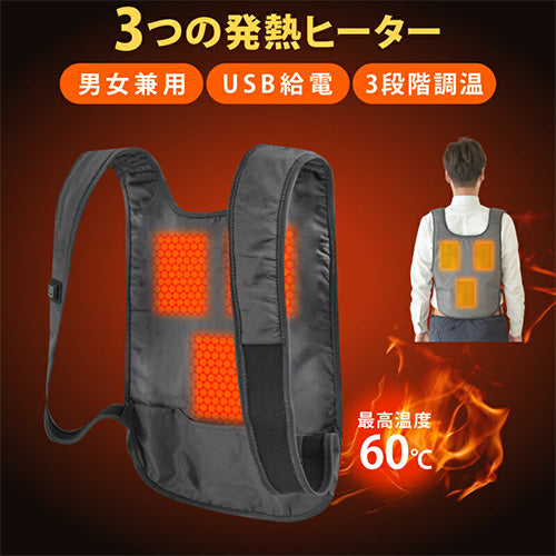 USB電熱ベスト 見えない 発熱インナー 中綿 3段階調温 速暖 防寒 L GY |