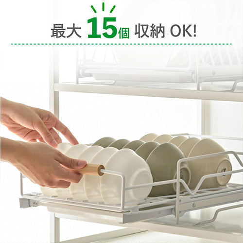 ●引き出しの底に水受けがついているので、洗った食器をそのまま置いても大丈夫です。※濡れた食器を収納する際は風通しの良い場所に設置してください。