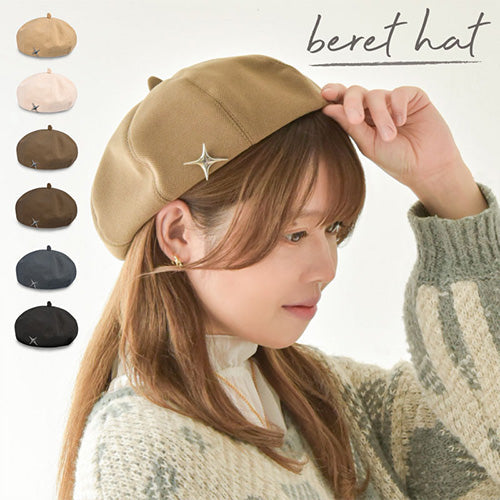 ベレー帽 レディース 秋冬 帽子 ワンポイント付 韓国風 サイズ調節可 MO