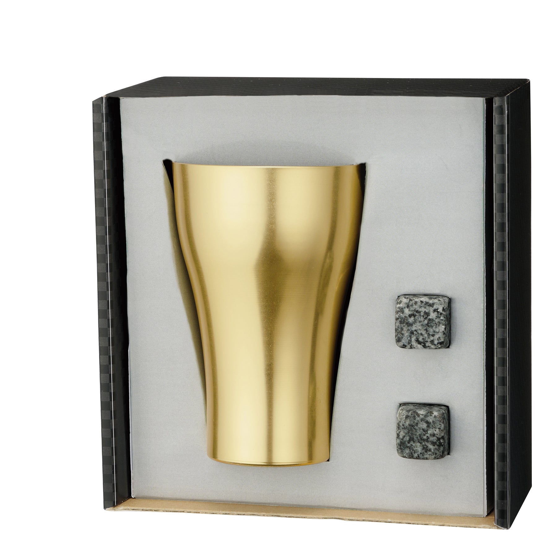 ●高級感漂うゴールドのアルミタンブラーとアイスストーンのセット商品です。