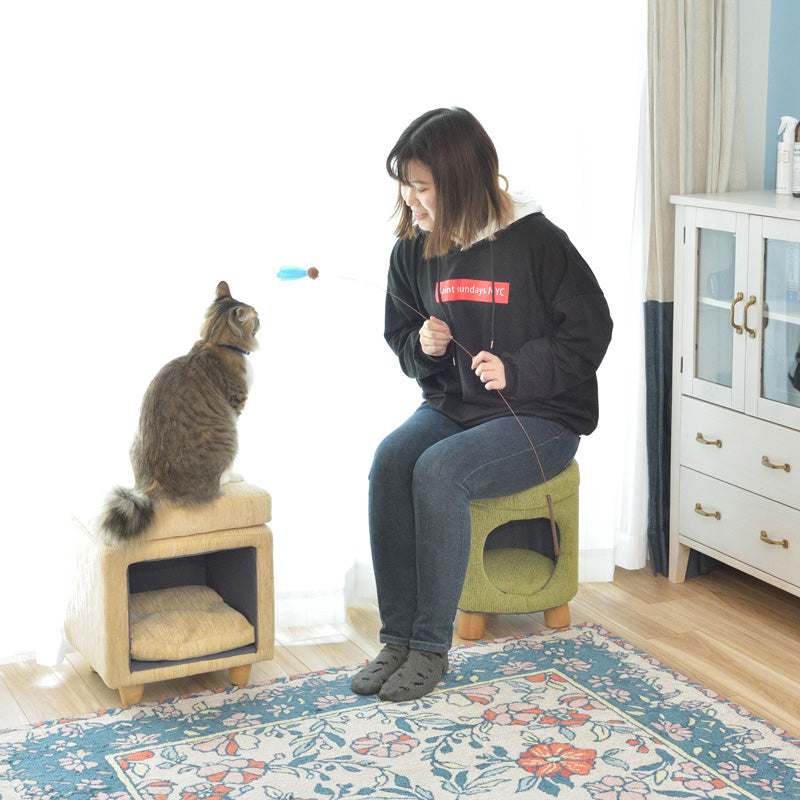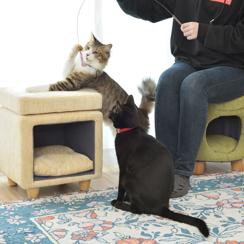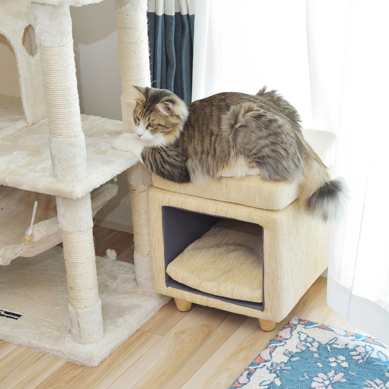 ●箱型でペットと一緒に座ってくつろげるペットハウススツールです。