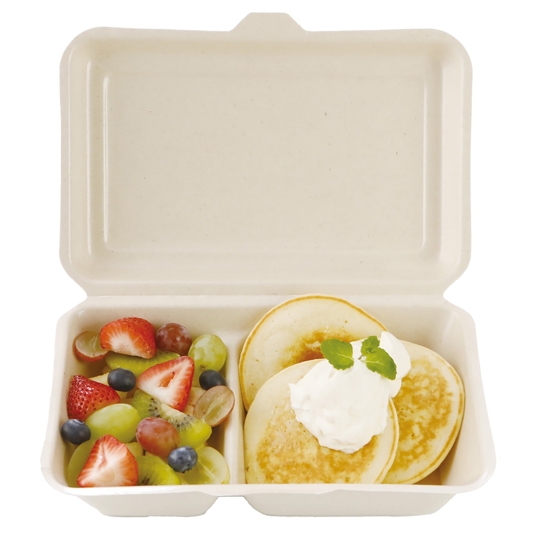 バガス容器は通常の紙容器よりも丈夫ですが長期保存には向きません。 パーティーやデリバリー、テイクアウト用などで用いるようにしてください。 |