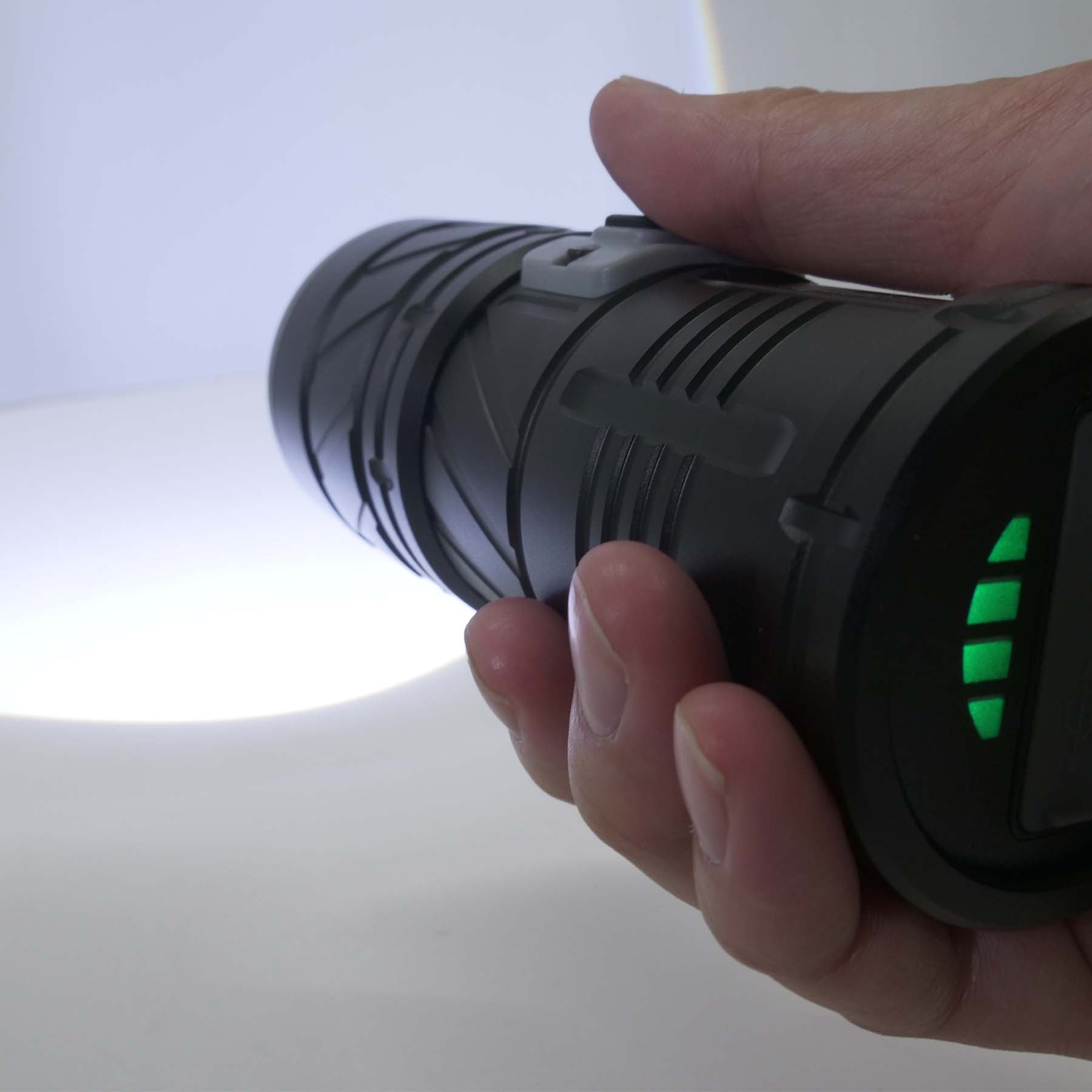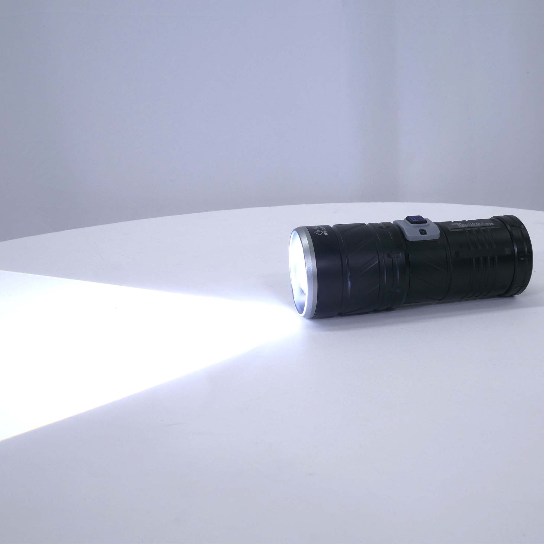 ●明るさ12000ルーメン、照射距離1500mを誇る強力懐中電灯です。