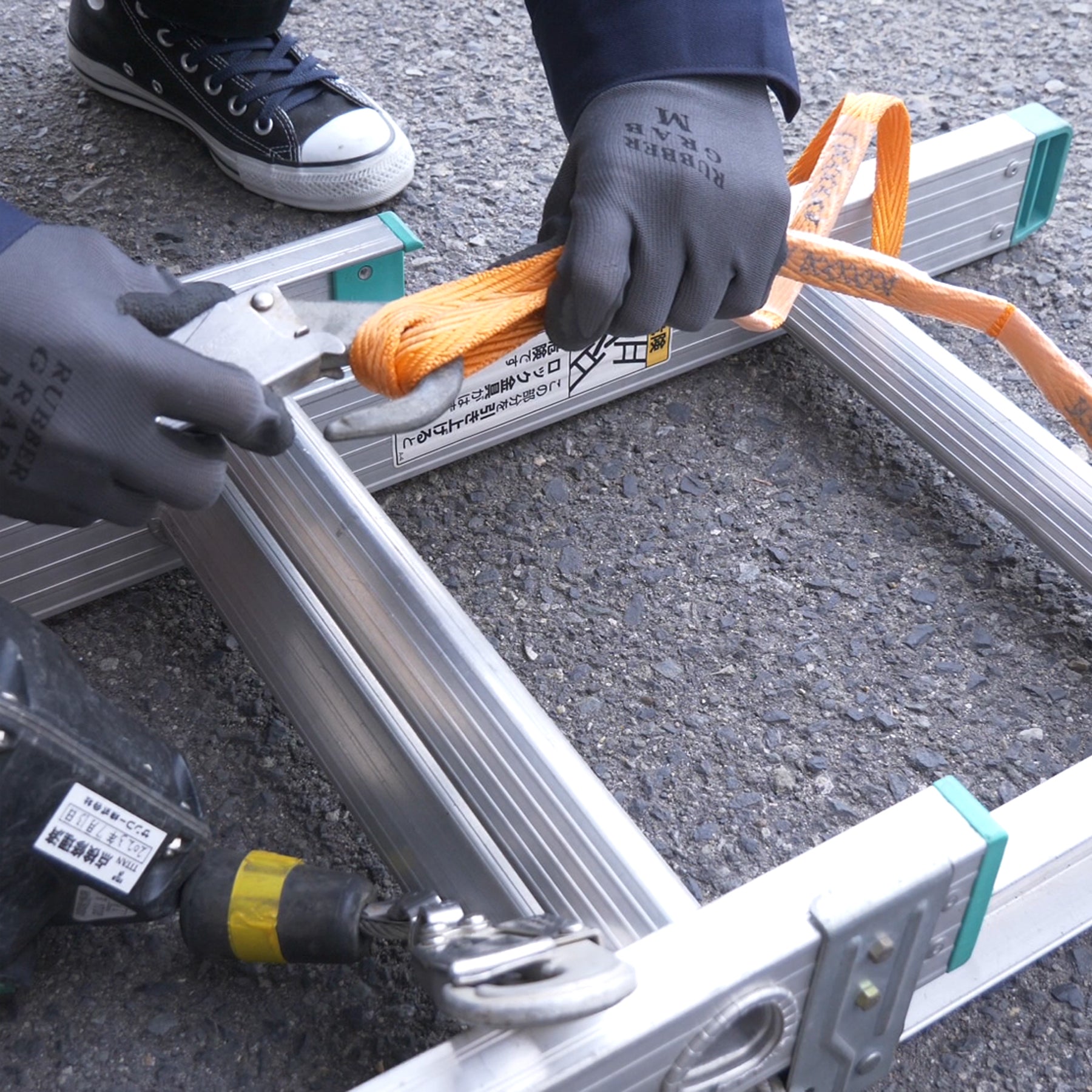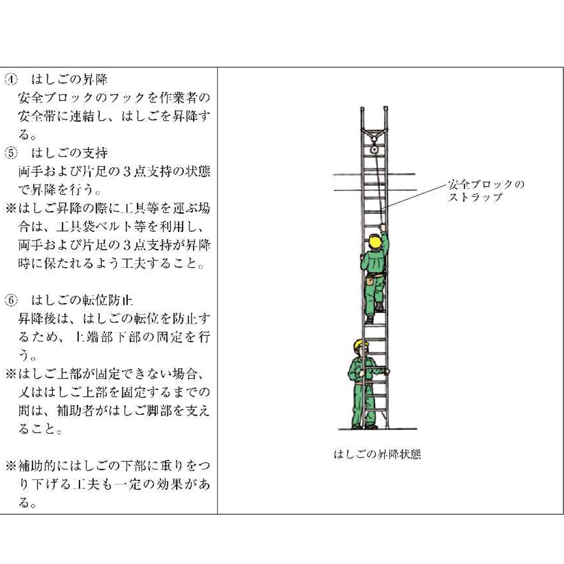 ●梯子と安全ブロック(リトラクタ式墜落阻止器具またはセーフティブロック)を固定することができるストラップです。