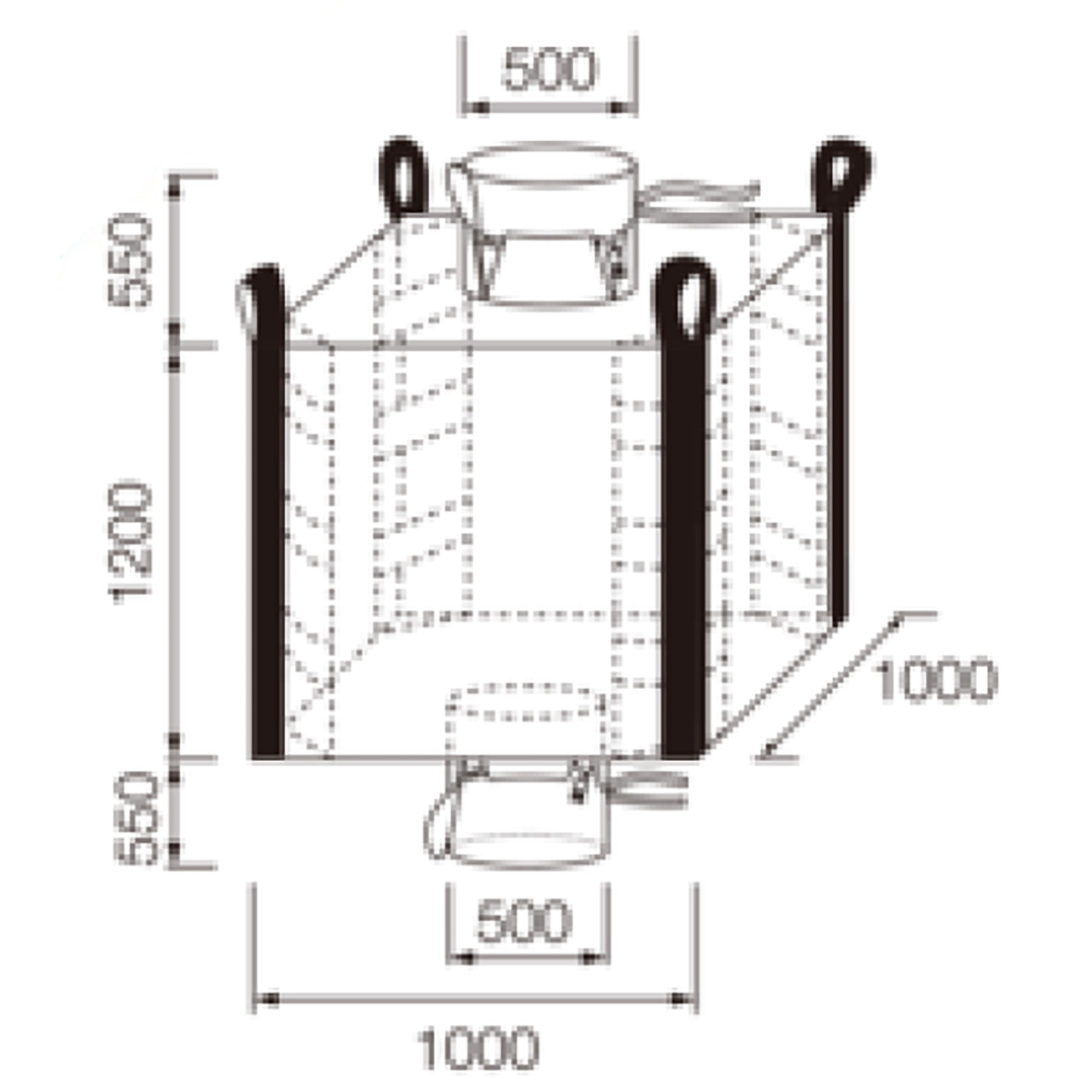 隔壁形状保持コンテナバッグ 角型 容量1200L 耐荷重1000kgタイプ 排出口あり 10枚セット