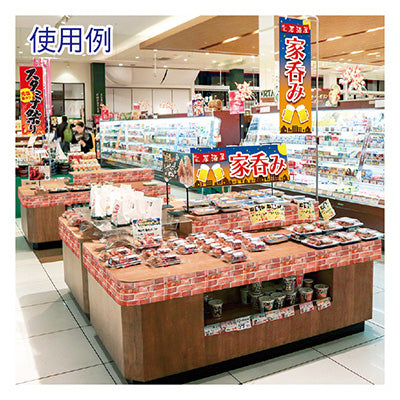 ●ミシン目でちぎって貼るだけで売り場の什器を簡単に装飾できます。