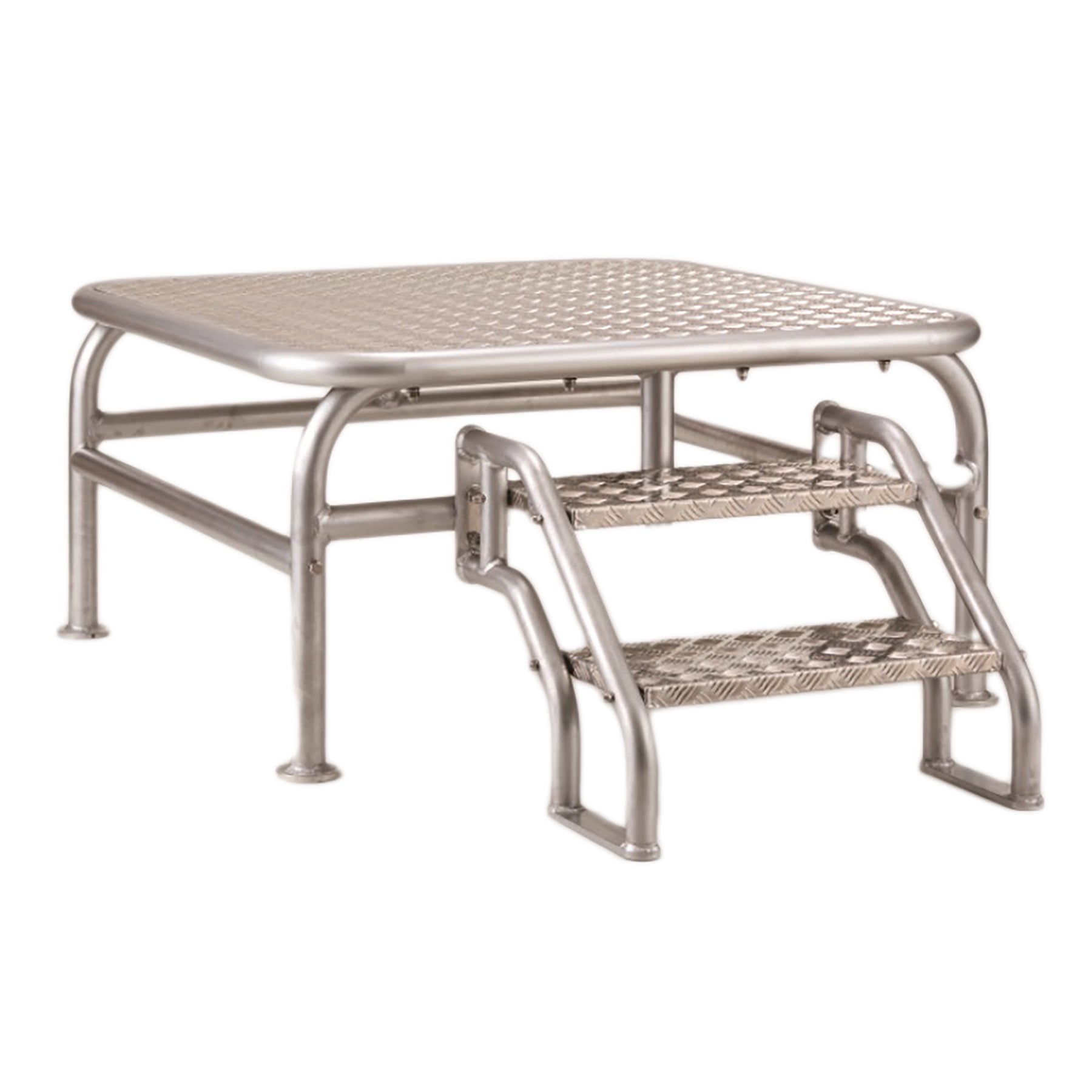 ●耐腐食性に優れたオールアルミ製で、上りやすい低床タイプの朝礼台です。