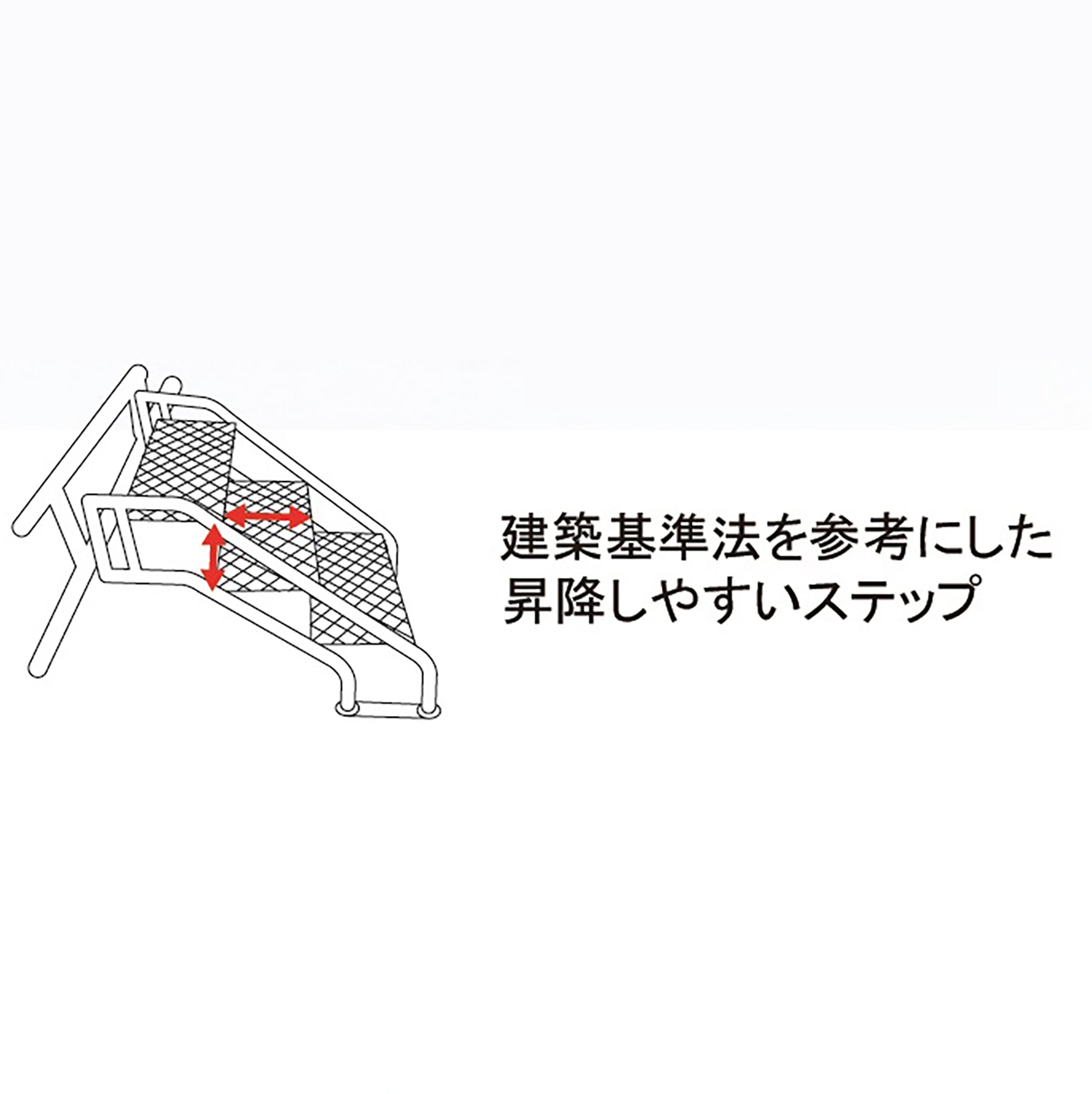 ●また、ステップの踏面幅は22cmと大きく、蹴上げ高さは20cmとちょうどよくなっているので、昇降時も安心安全です。