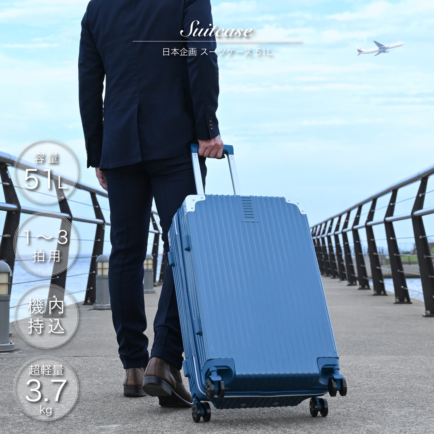 ●『スーツケース 耐衝撃 超軽量 静音 ダブルキャスター付き 51L』は、容量約50Lの大容量スーツケースです。