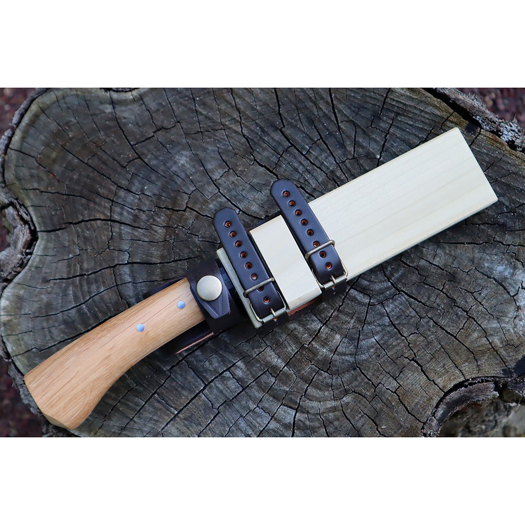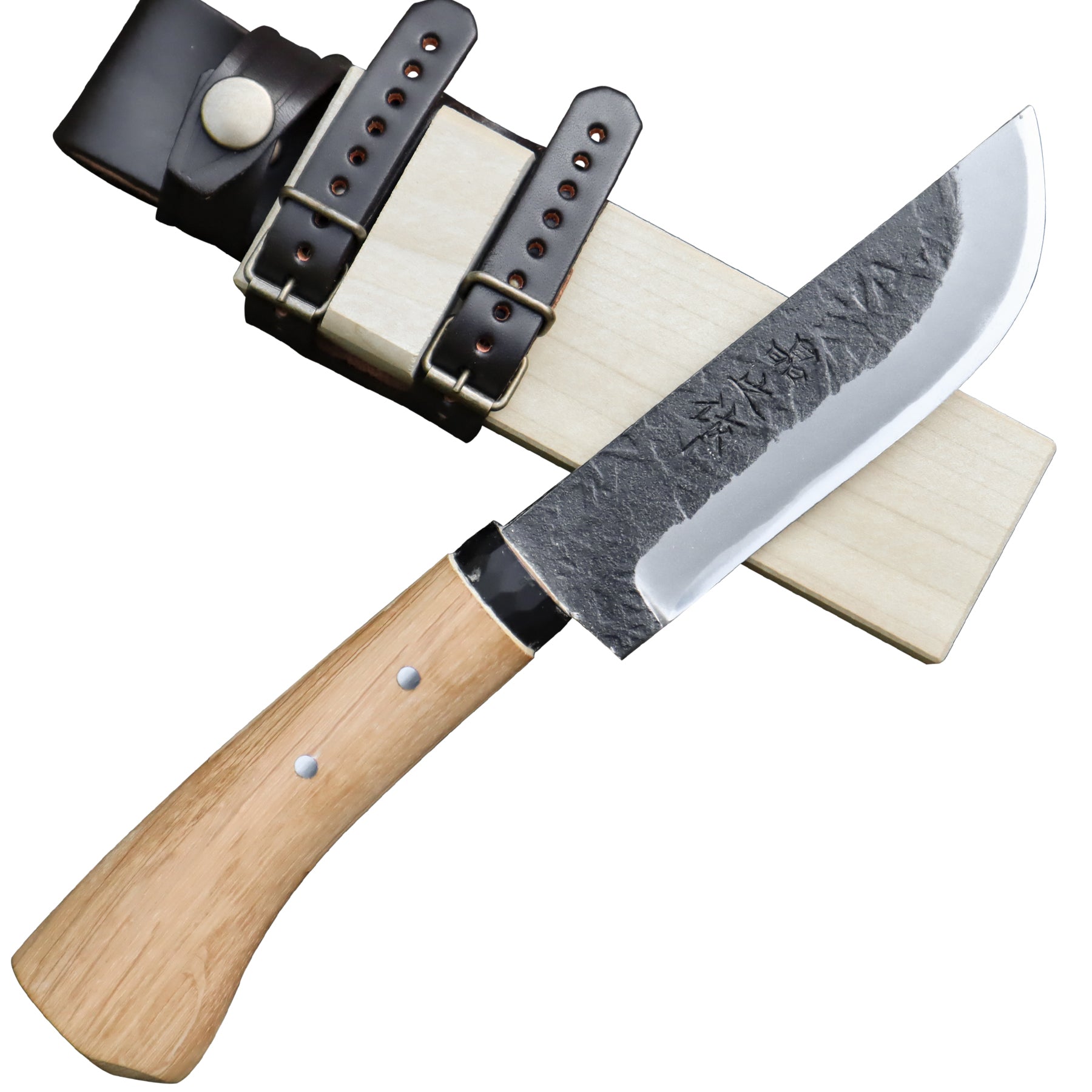 キャンプ剣鉈 180 白鋼 黒槌目 黒丸輪 樫柄 木鞘革バンド 晶之作 |