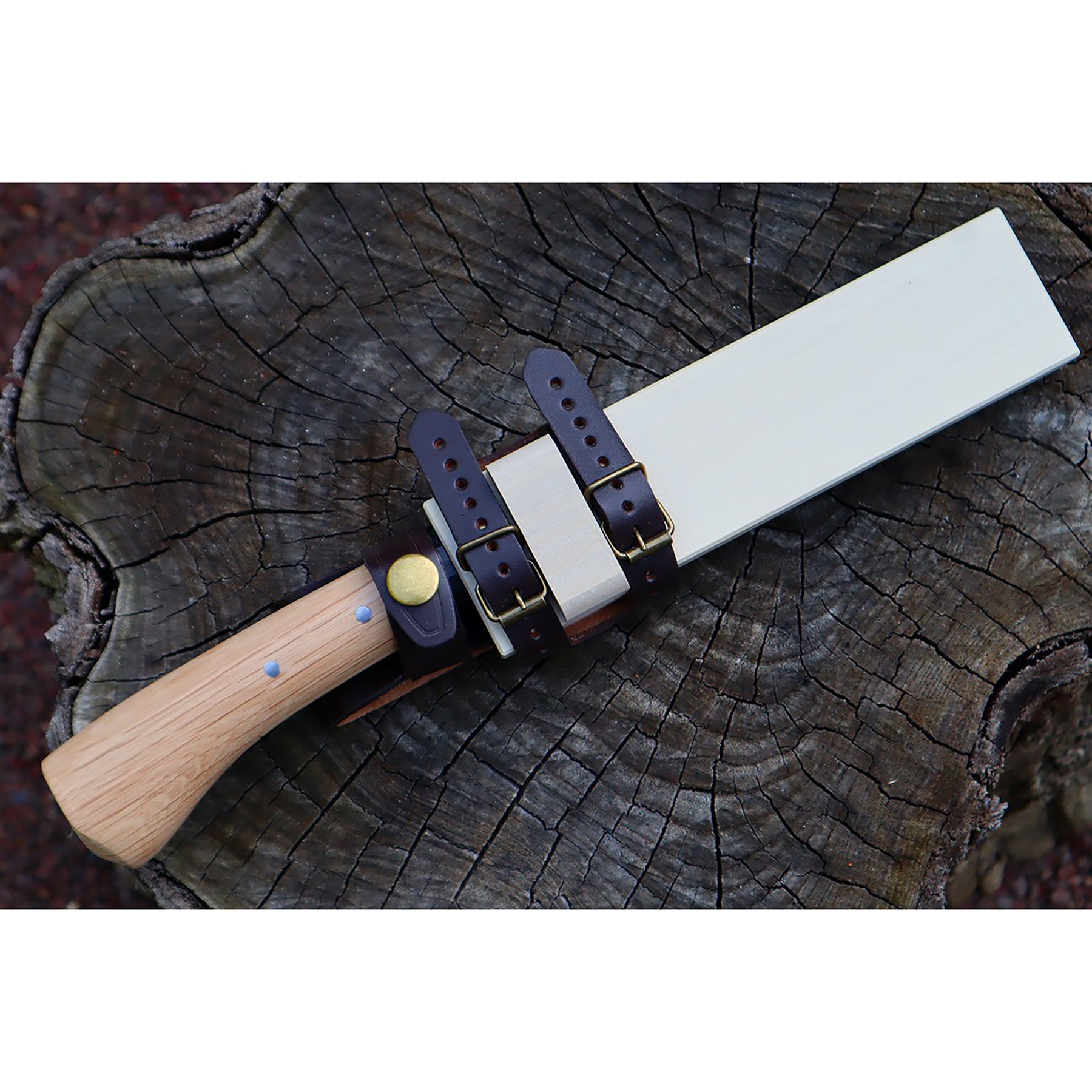 キャンプ剣鉈 120 白鋼 黒槌目 黒丸輪 樫柄 木鞘革バンド 晶之作 |