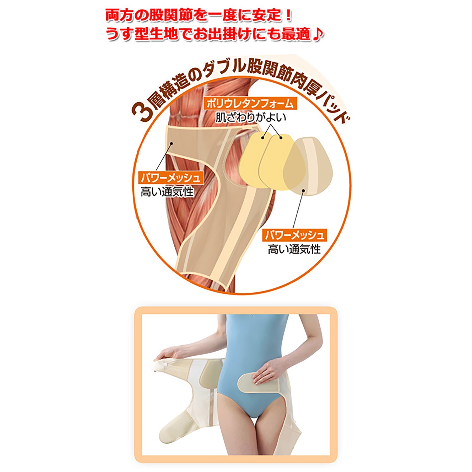 ●『うす楽スイスイインナー股関節サポーター』は、両方の股関節を一度に安定させ、うす型生地でお出掛けにも最適な股関節サポーターです。