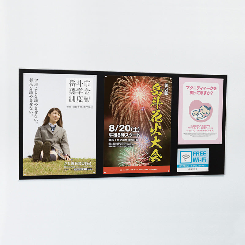 | 商業施設や病院・クリニック、学校、公共施設、駅などの屋内インフォメーションボードに。 |