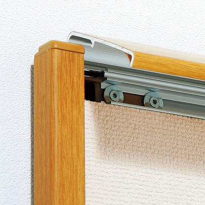 | アルミ押出材木目シート貼り仕上、4mmベニヤ掲示シート(ピン・マグ両用)貼り |
