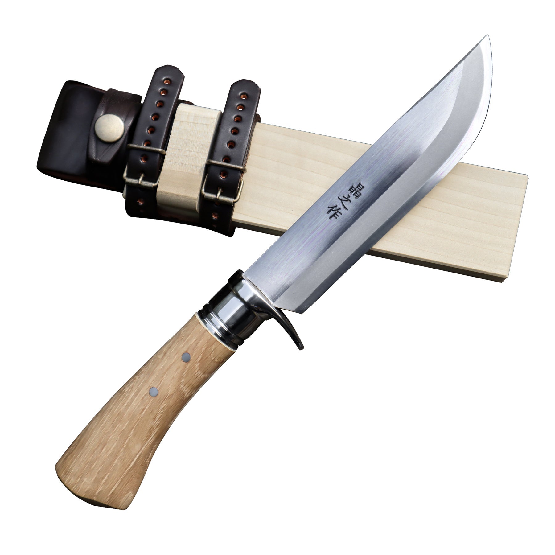 有害駆除剣鉈210 白鋼 磨 樫柄 ステンツバ輪 木鞘革バンド 晶之作 |