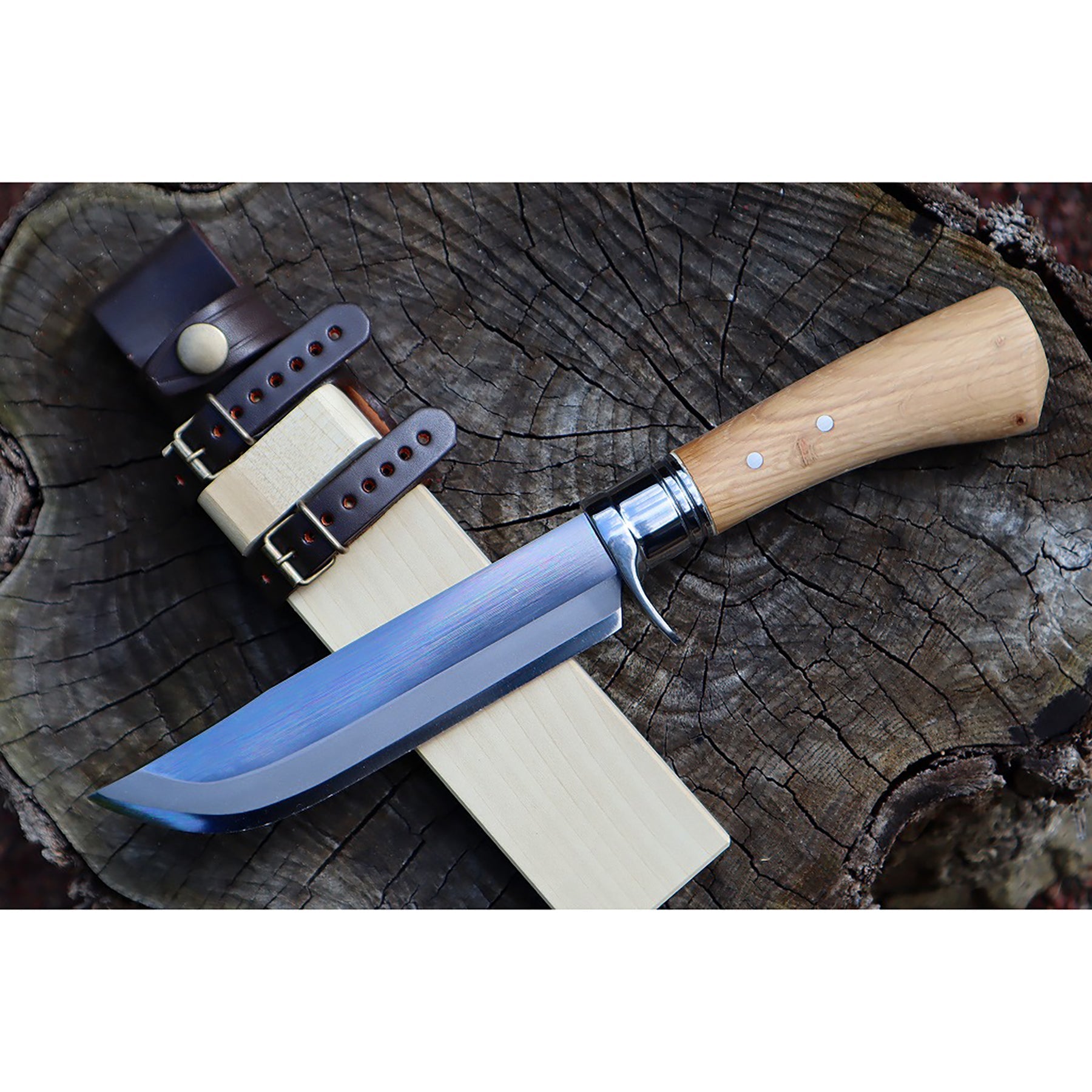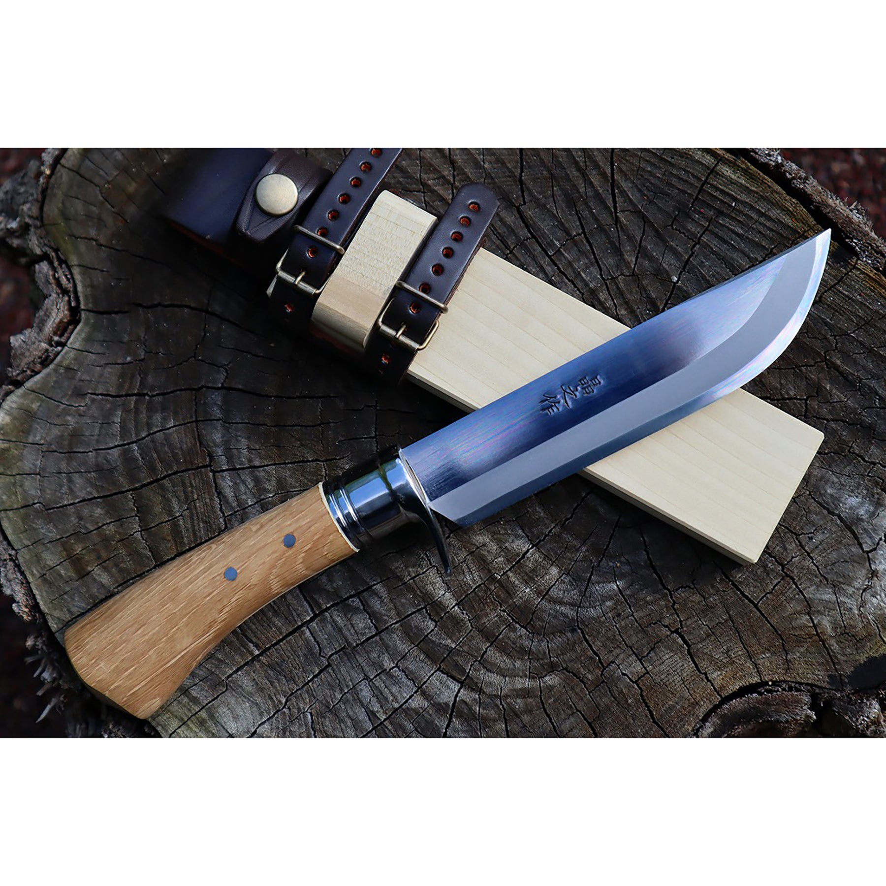 有害駆除剣鉈150 白鋼 磨 樫柄 ステンツバ輪 木鞘革バンド 晶之作