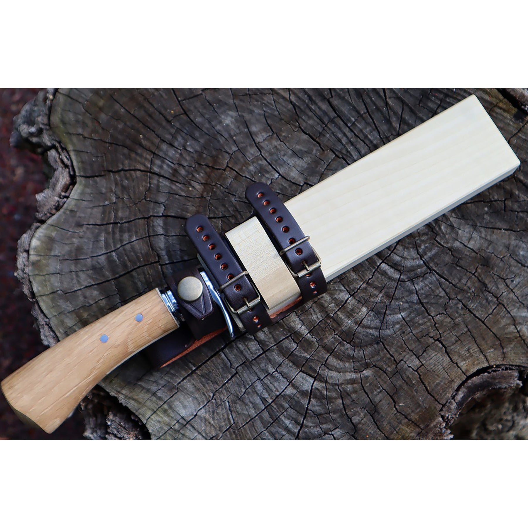 有害駆除剣鉈120 白鋼 磨 樫柄 ステンツバ輪 木鞘革バンド 晶之作 |