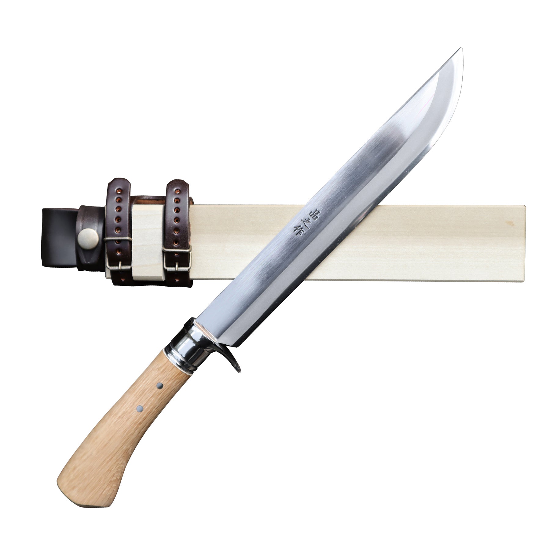 有害駆除剣鉈180 白鋼 磨 樫柄 ステンツバ輪 木鞘革バンド 晶之作 |