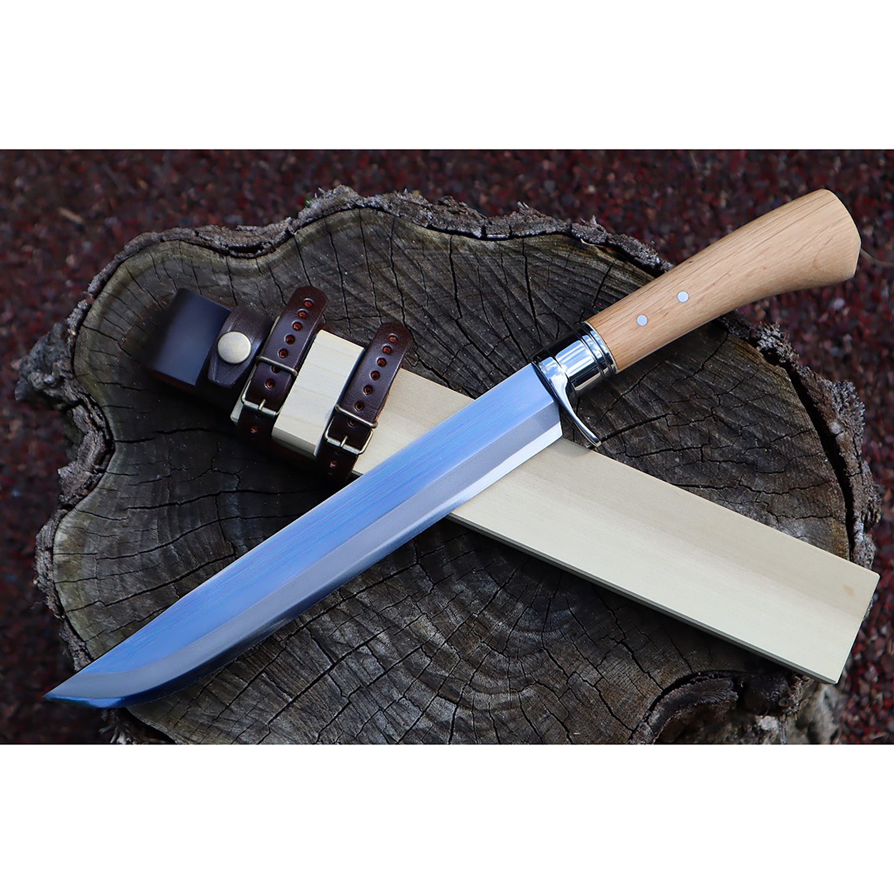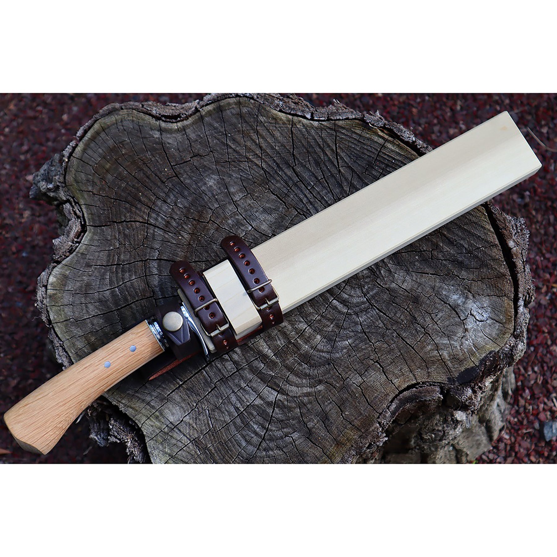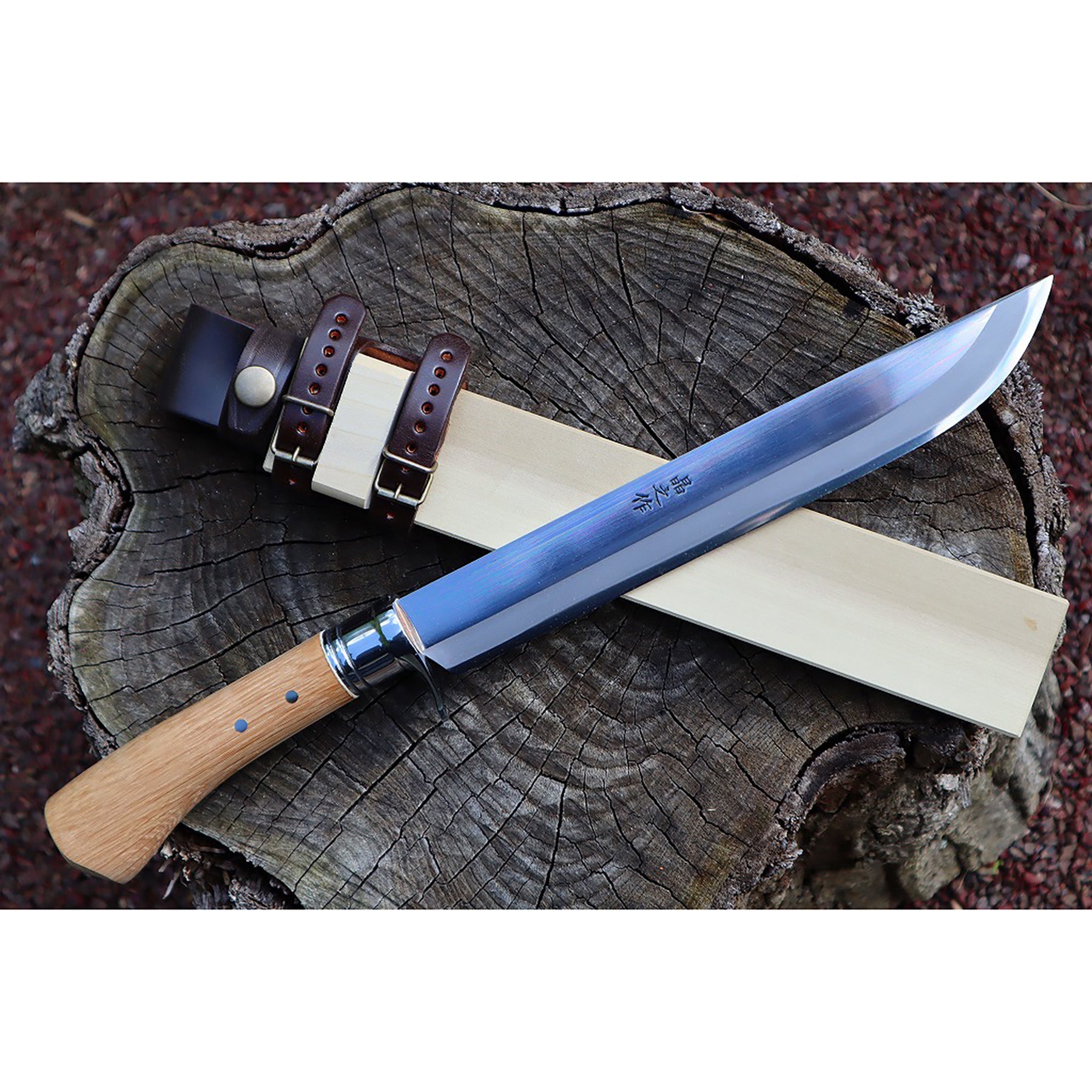 有害駆除剣鉈240 白鋼 磨 樫柄 ステンツバ輪 木鞘革バンド 晶之作