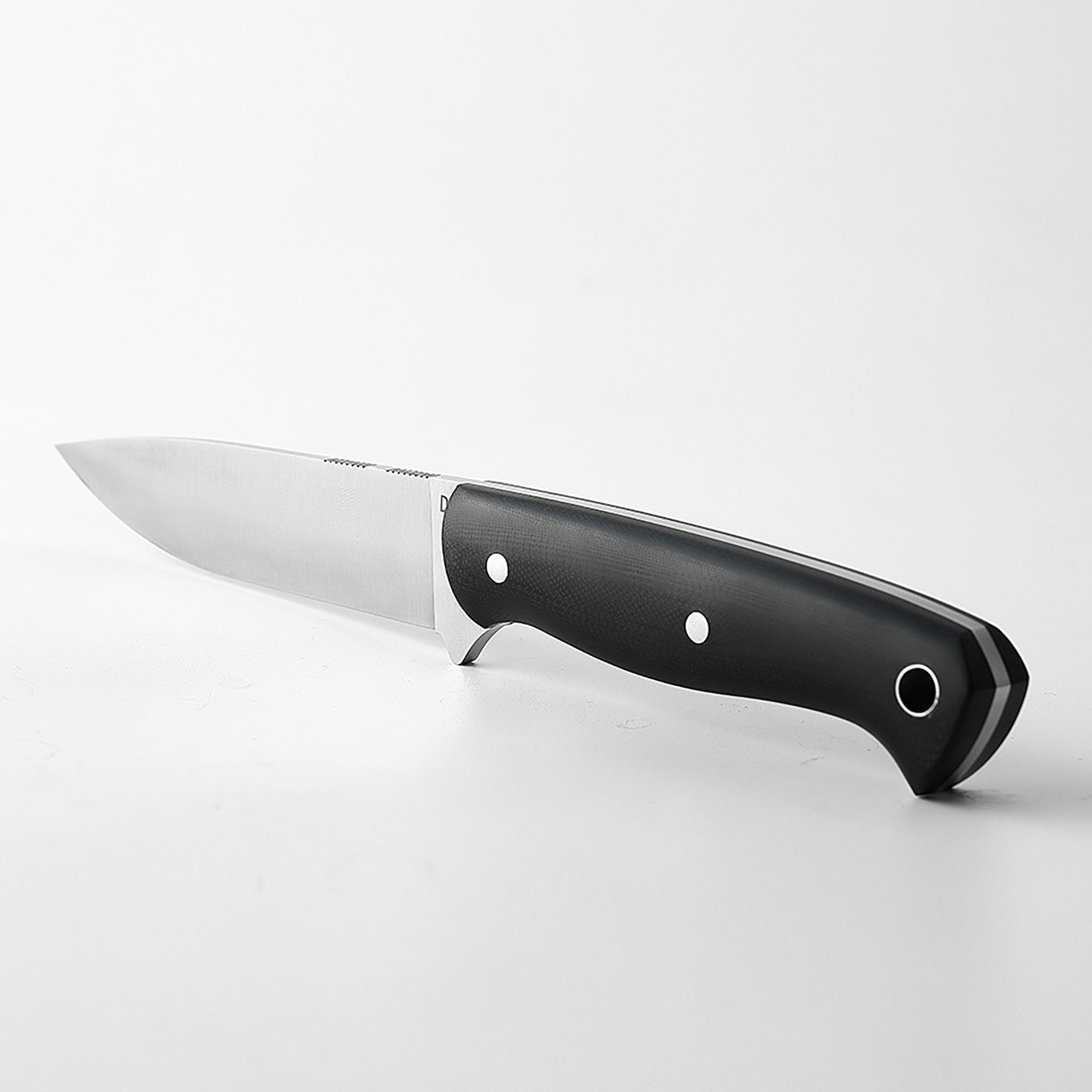 ●ブレードには、優れた切れ味と刃持ちの良さから人気のある「D2鋼」を、ハンドルには、ガラス繊維を固めた素材「G10」を使用しており、刃厚が4mmと厚く、ブレードの背を木の棒で叩いて行うバドニングにも最適です。