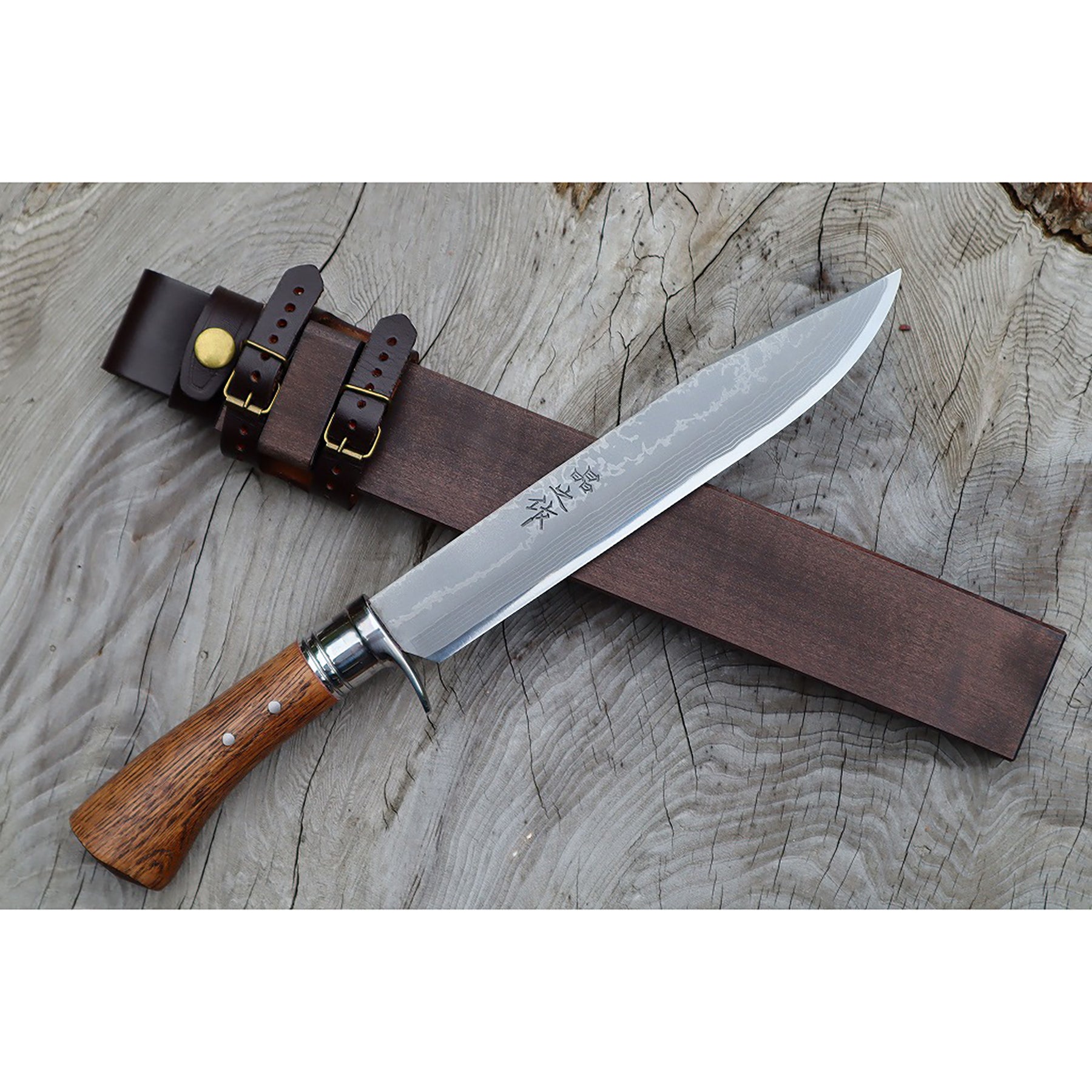 土佐登山剣鉈8寸 ステンツバ輪 ダマスカス15青2 洋樫柄オイルステン |
