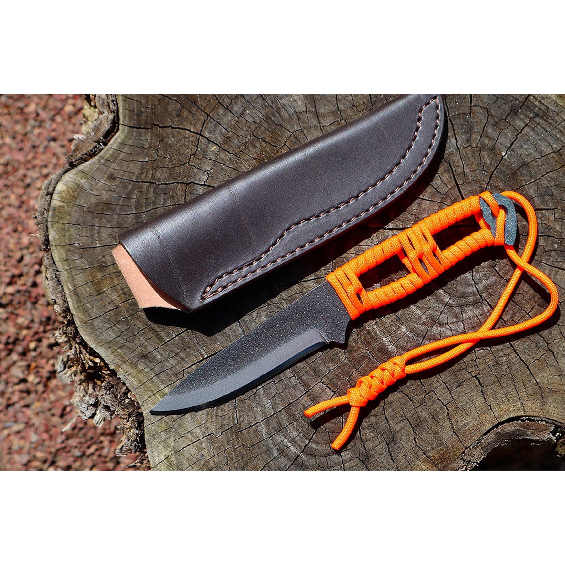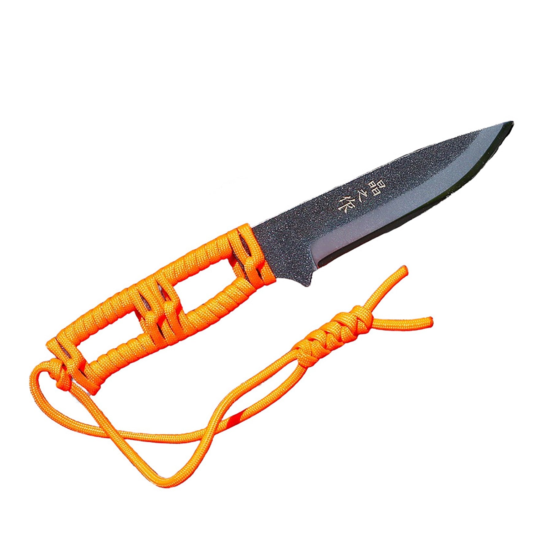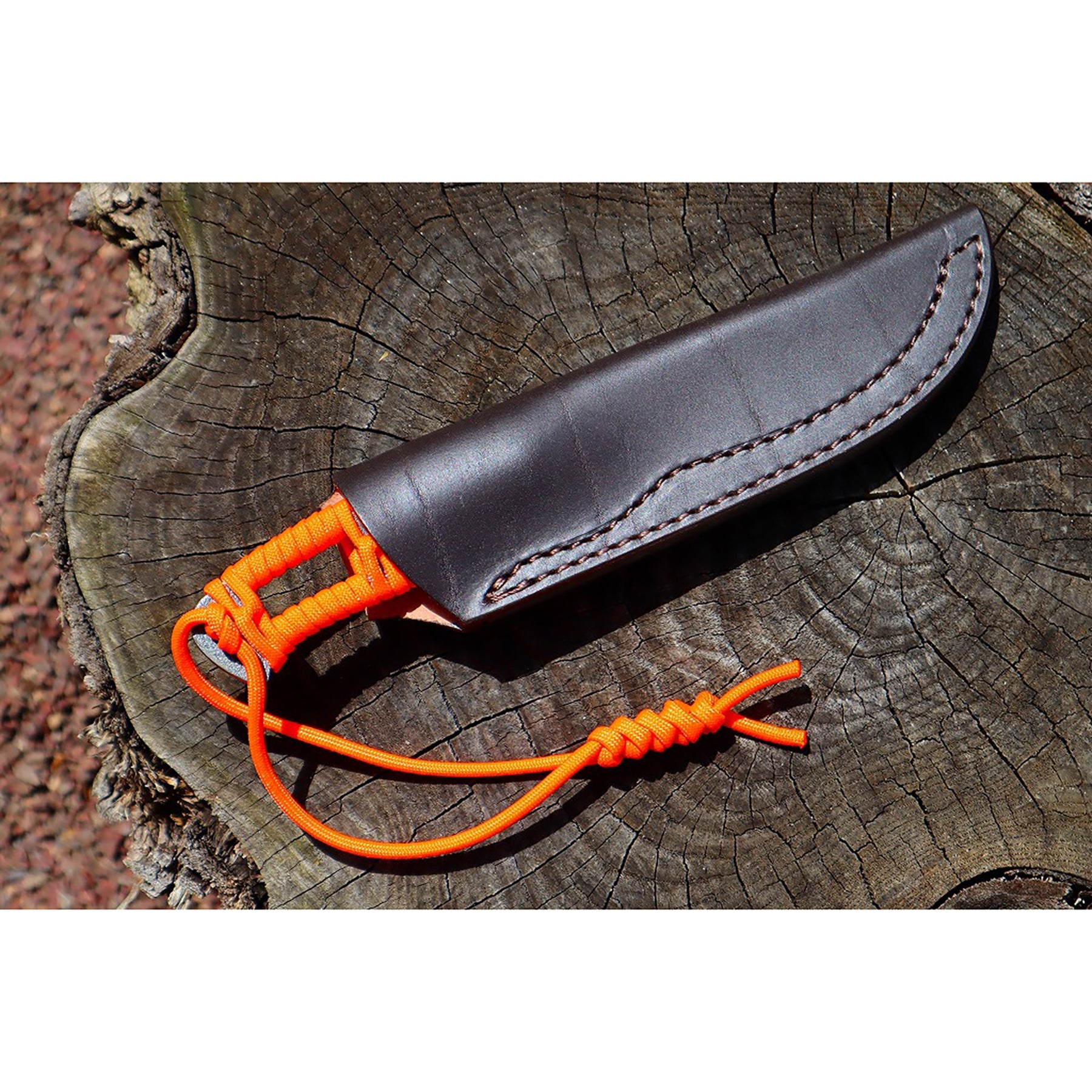 アウトドアナイフ:MASANO 白鋼 パラシュートコード オレンジ 皮ケース 晶之作