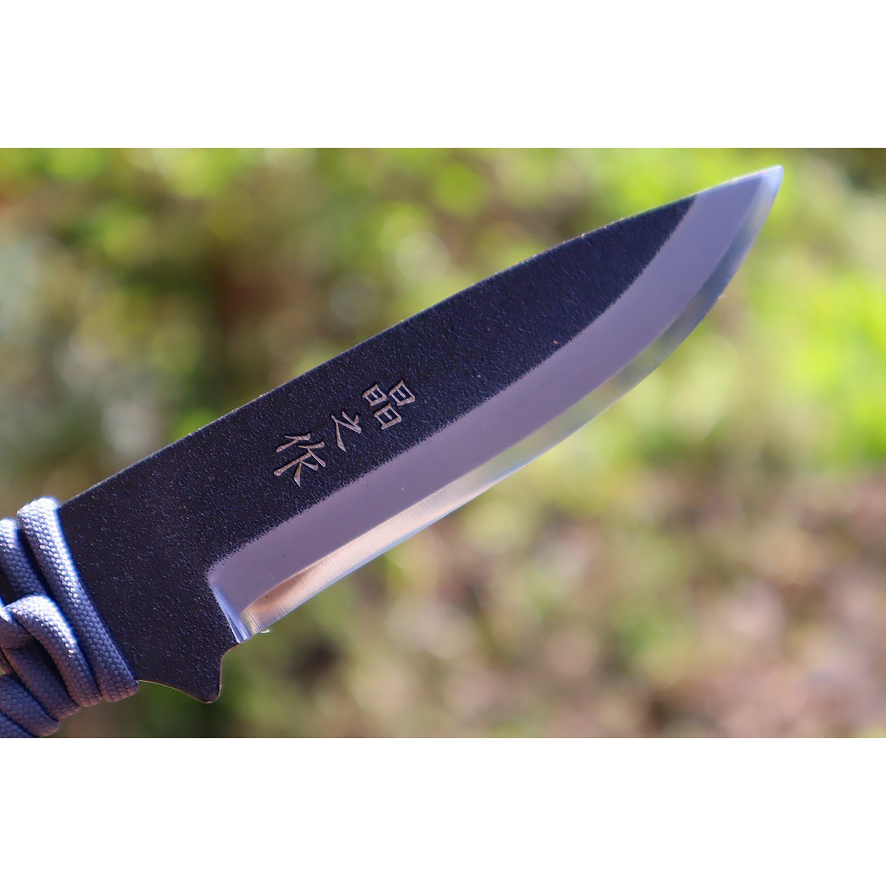 ●アウトドアナイフ:MASANO 白鋼 パラシュートコード 皮ケース 晶之作は、コンパクトなサイズですが、フルタング構造で刃厚もあるためバトニングにも対応可能です。