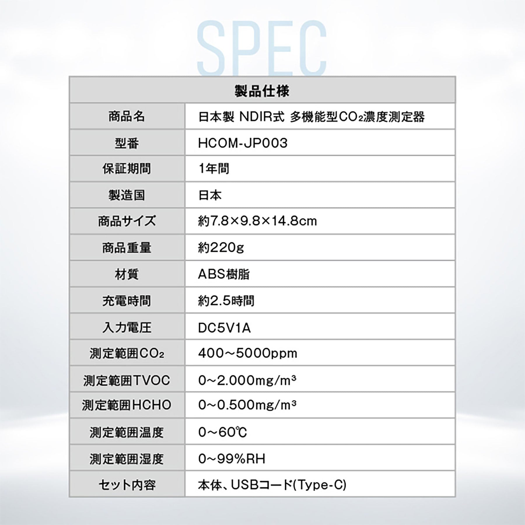 オムニ 日本製 NDIR式 多機能型CO2濃度測定器 温湿度測定機能付 3密回避