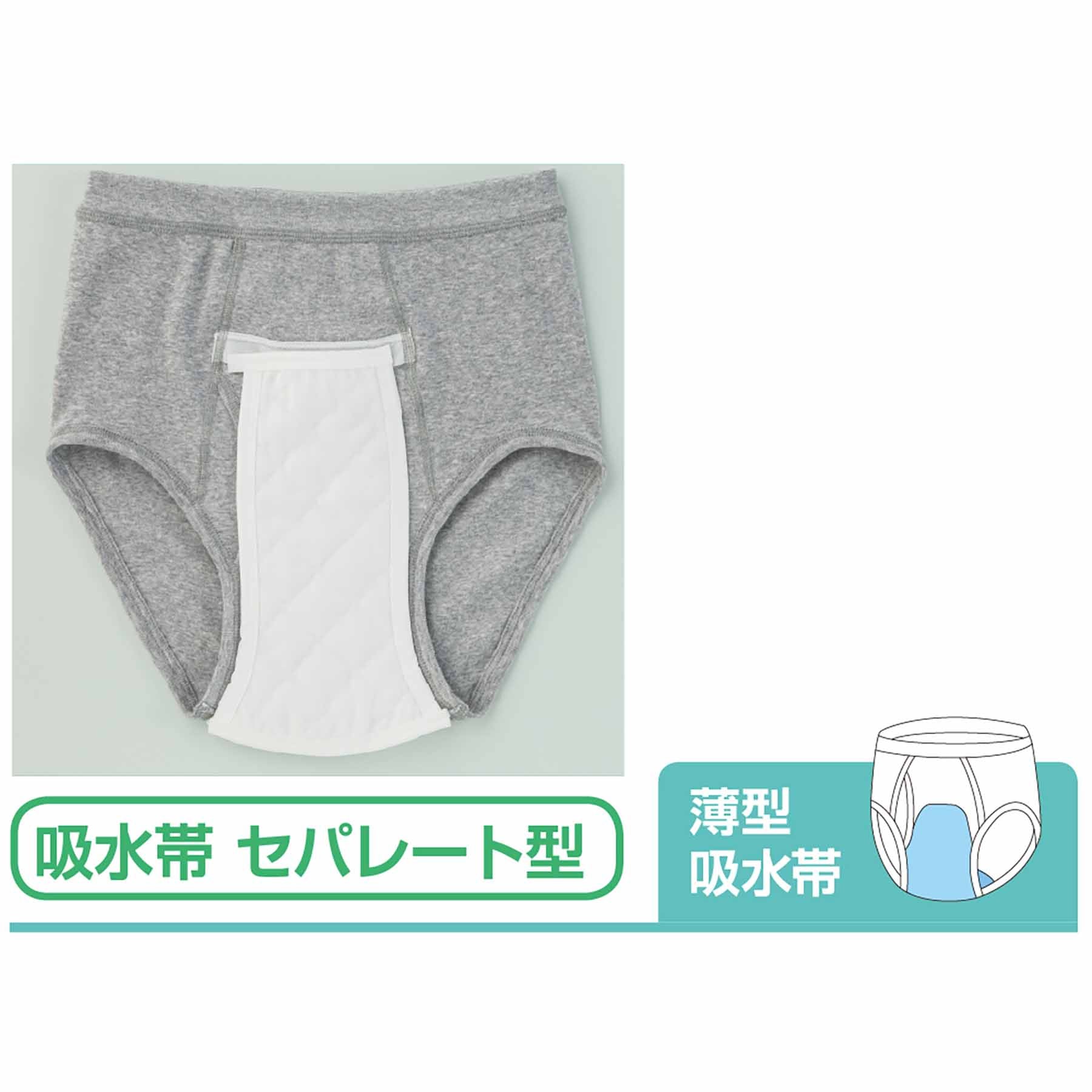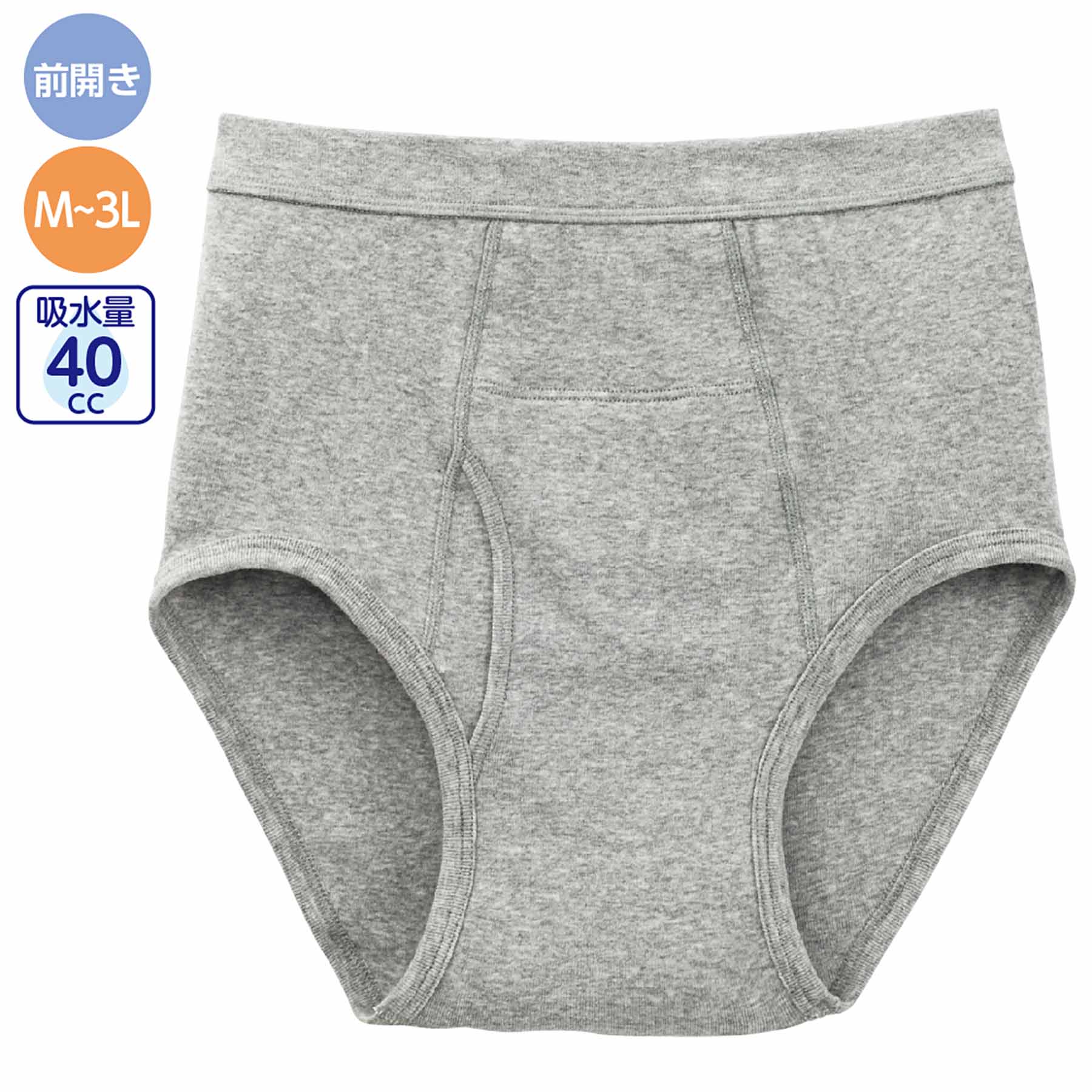 ●『安心快適ブリーフ(2枚組) 前開きタイプ 抗菌防臭消臭 紳士用 GY』は、下着と吸水帯の脚まわりが離れているタイプの紳士用ブリーフです。