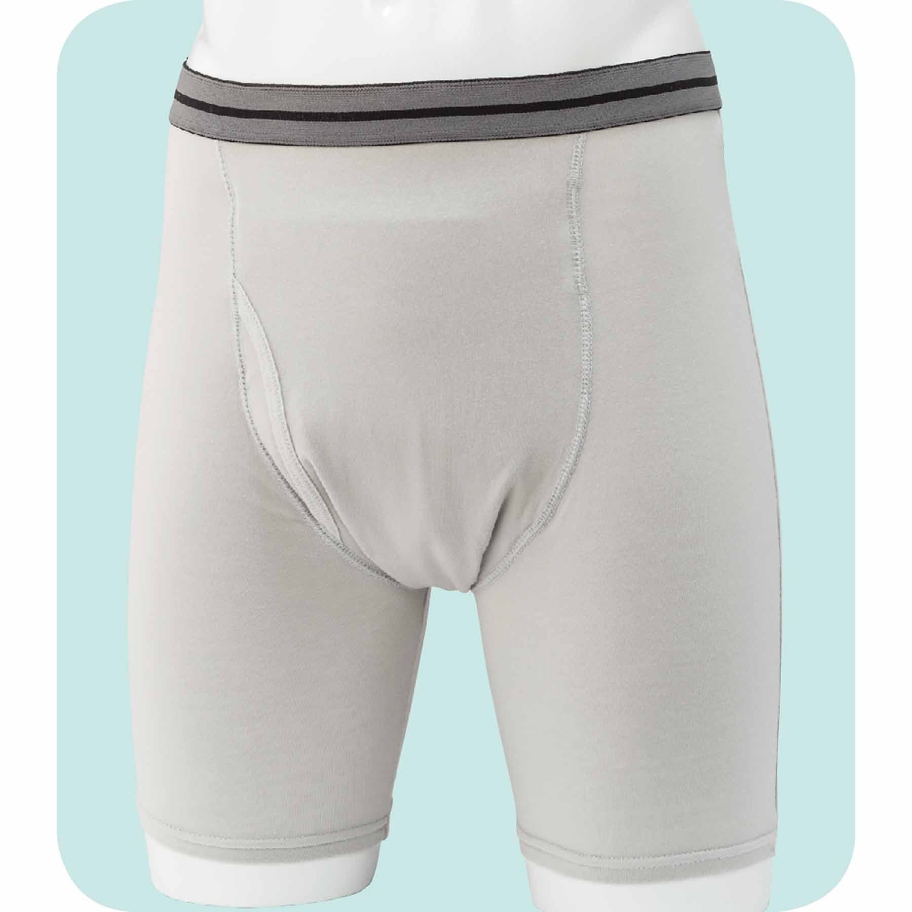 ●『安心快適ボクサーブリーフ 尿漏れ対策 300cc吸水 消臭加工 紳士用 GY』は、パンツの股の部分に吸水帯を施し、尿を吸水・消臭する機能付きパッドと下着が一体型となったパンツです。