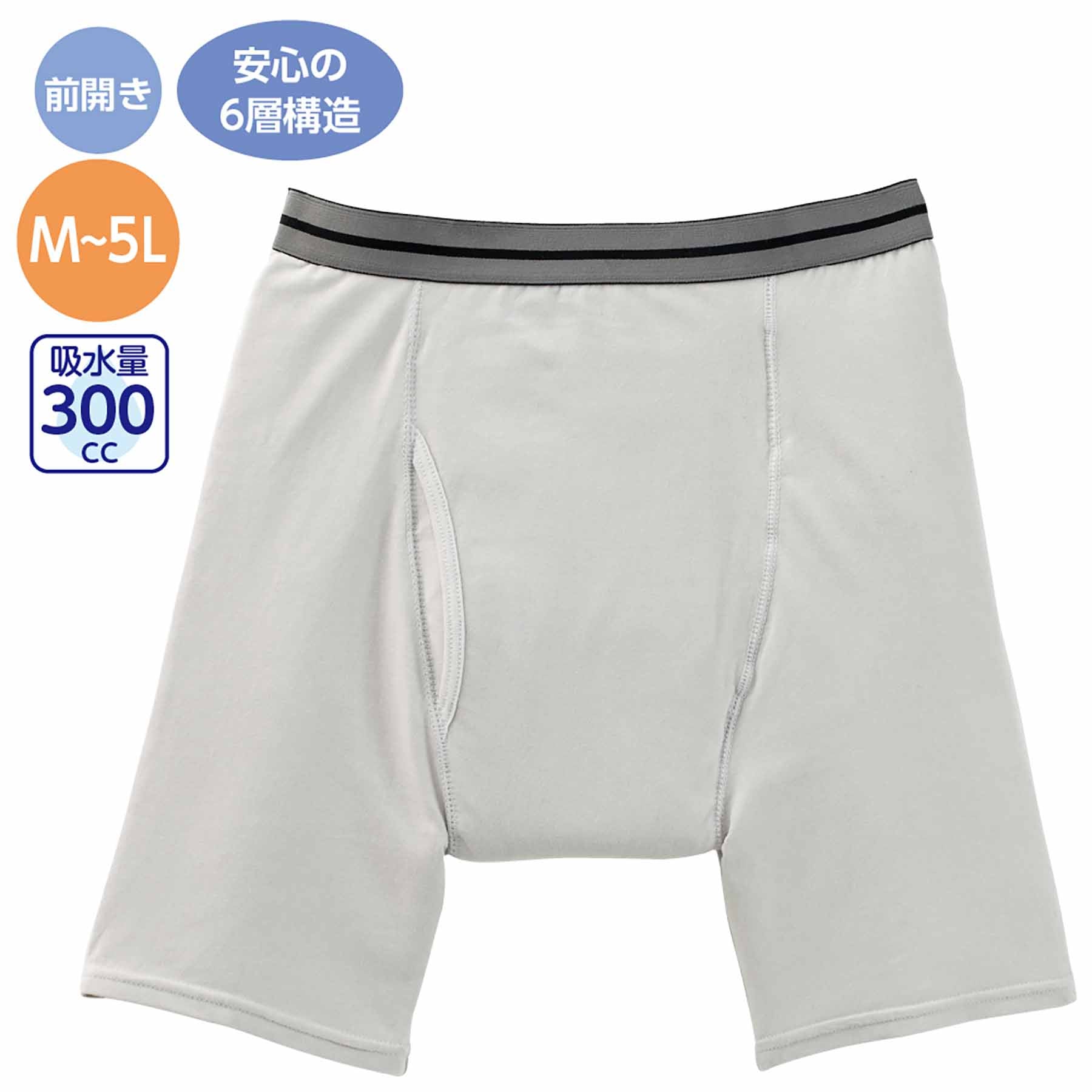 安心快適ボクサーブリーフ 尿漏れ対策 300cc吸水 消臭加工 紳士用 GY 3L