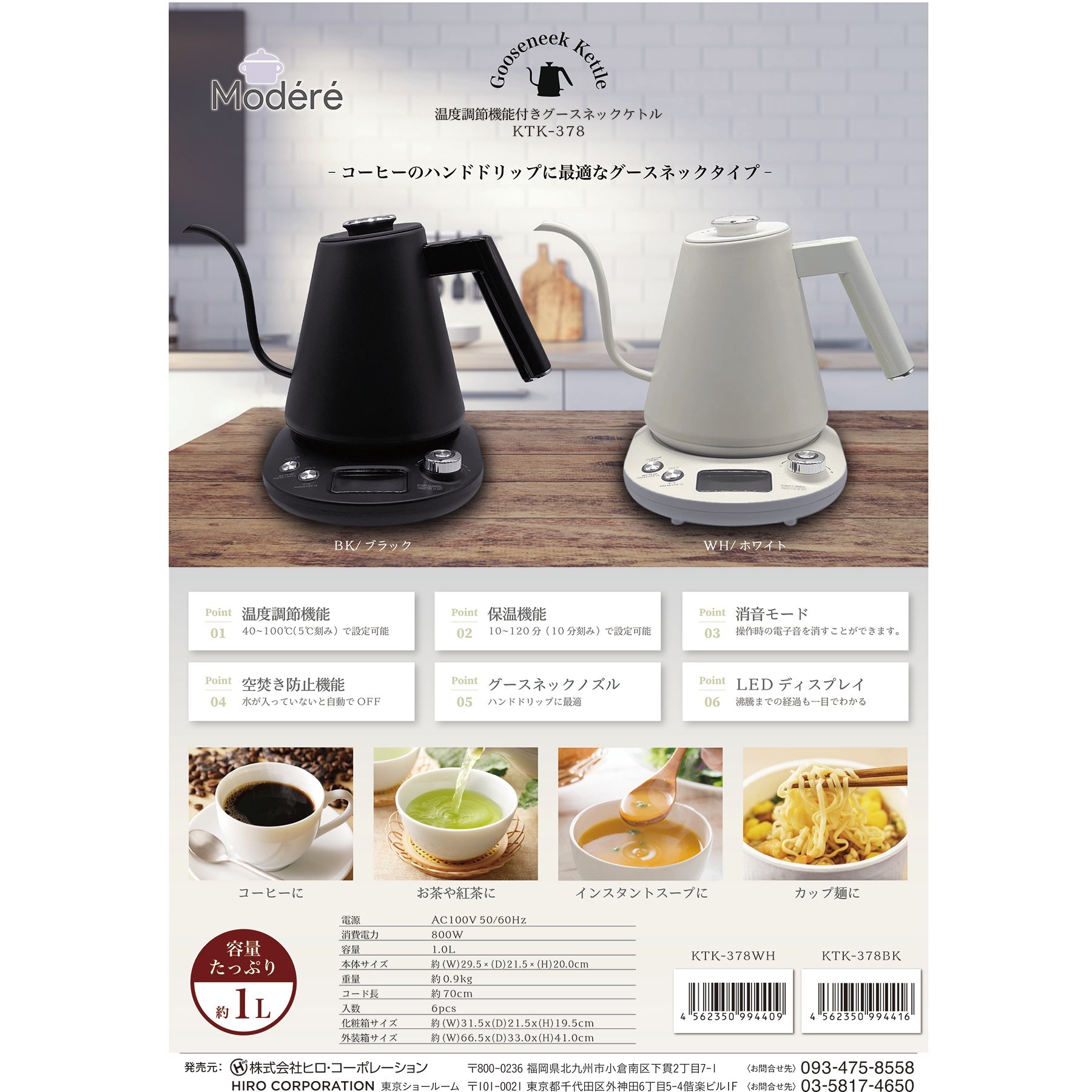 ●『Modere 温度調節機能付きグースネックケトル KTK-378』は、保温機能付きの電気ケトルです。