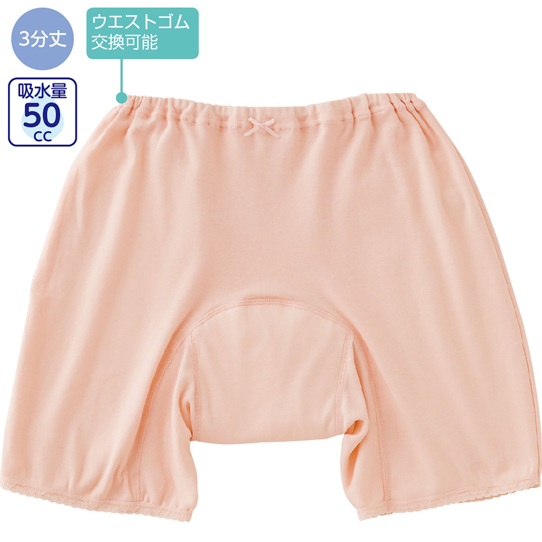 安心快適3分丈ショーツ 尿漏れ対策 しっかり吸水 ウエストゴム交換可 PH S