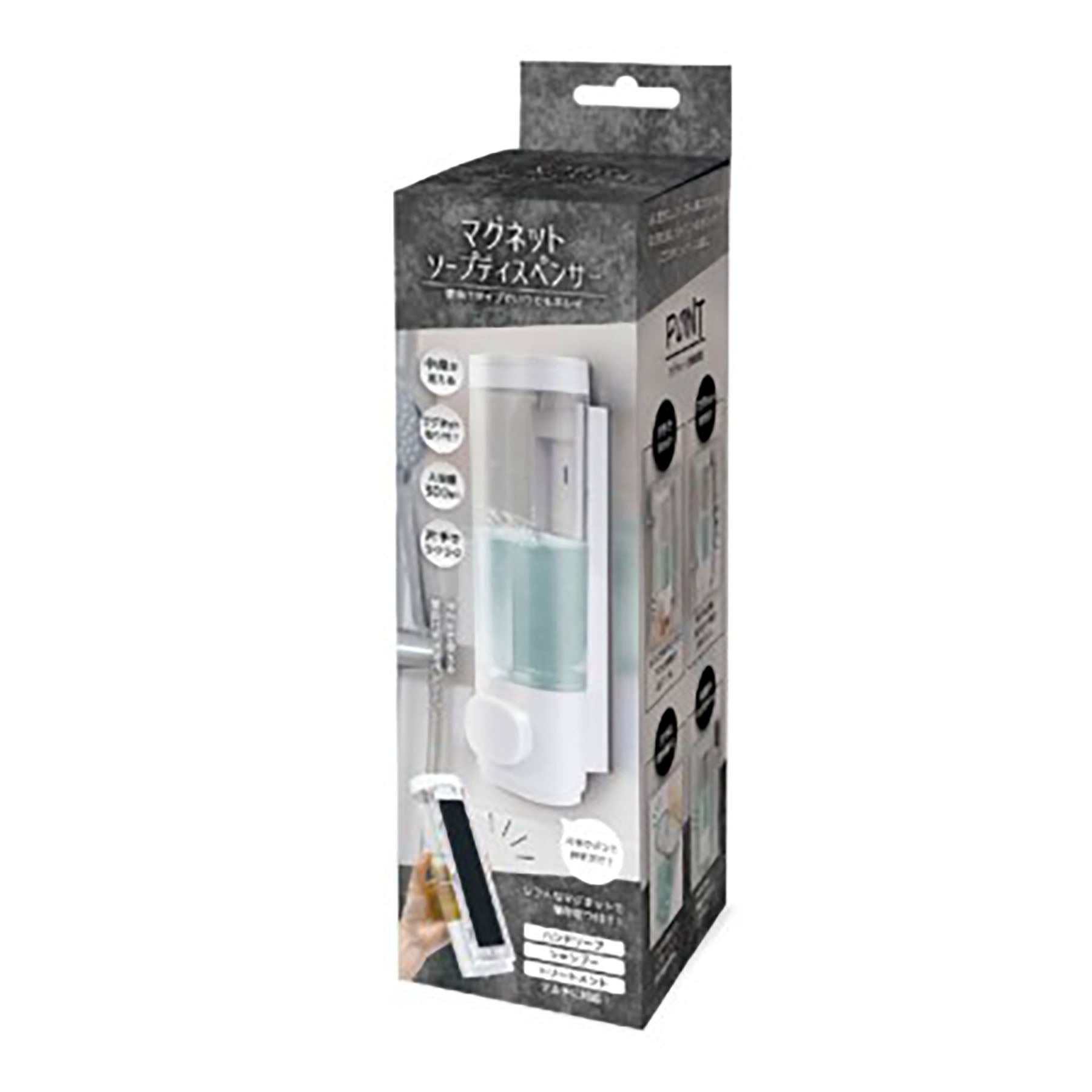 ●『マグネットソープディスペンサー』は、マグネットで「ピタッ」と浮かして収納するので、ボトル底が濡れなくてヌメリが発生しにくく衛生的で、スタイリッシュな浴室を作り上げることができます。