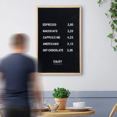 ●レターボードはアルファベットや文字、数字をボードに差し込んでテキストを作成する新しいタイプのサインボードです。