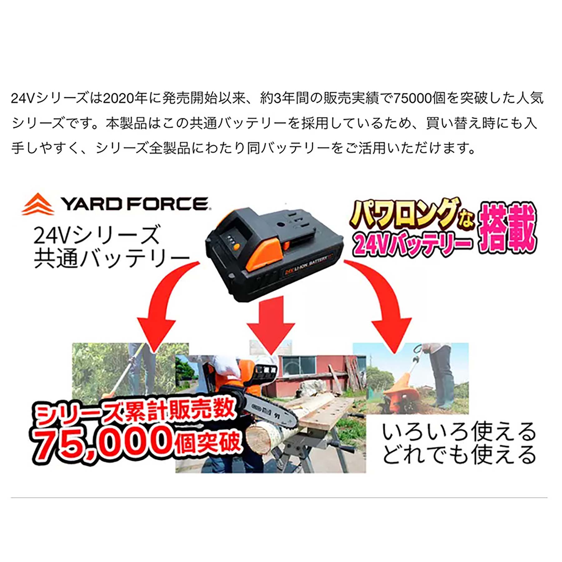 YARDFORCE24Vコードレスシリーズ専用です。 充電器は別売です。 |