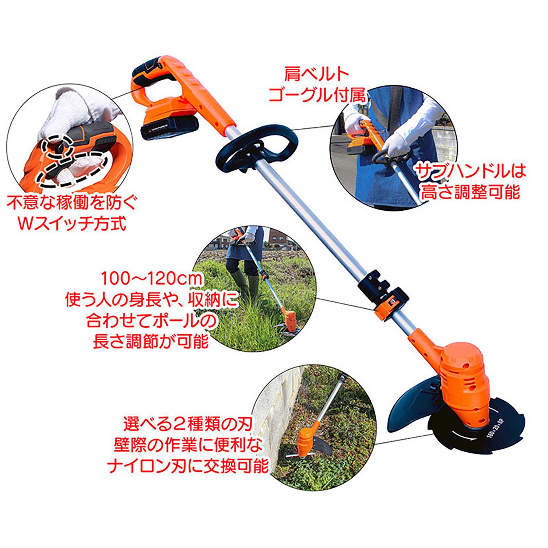 ●コードレス18Vハイパワーでナイロン刃と金属刃の2 種類が使用可能です。