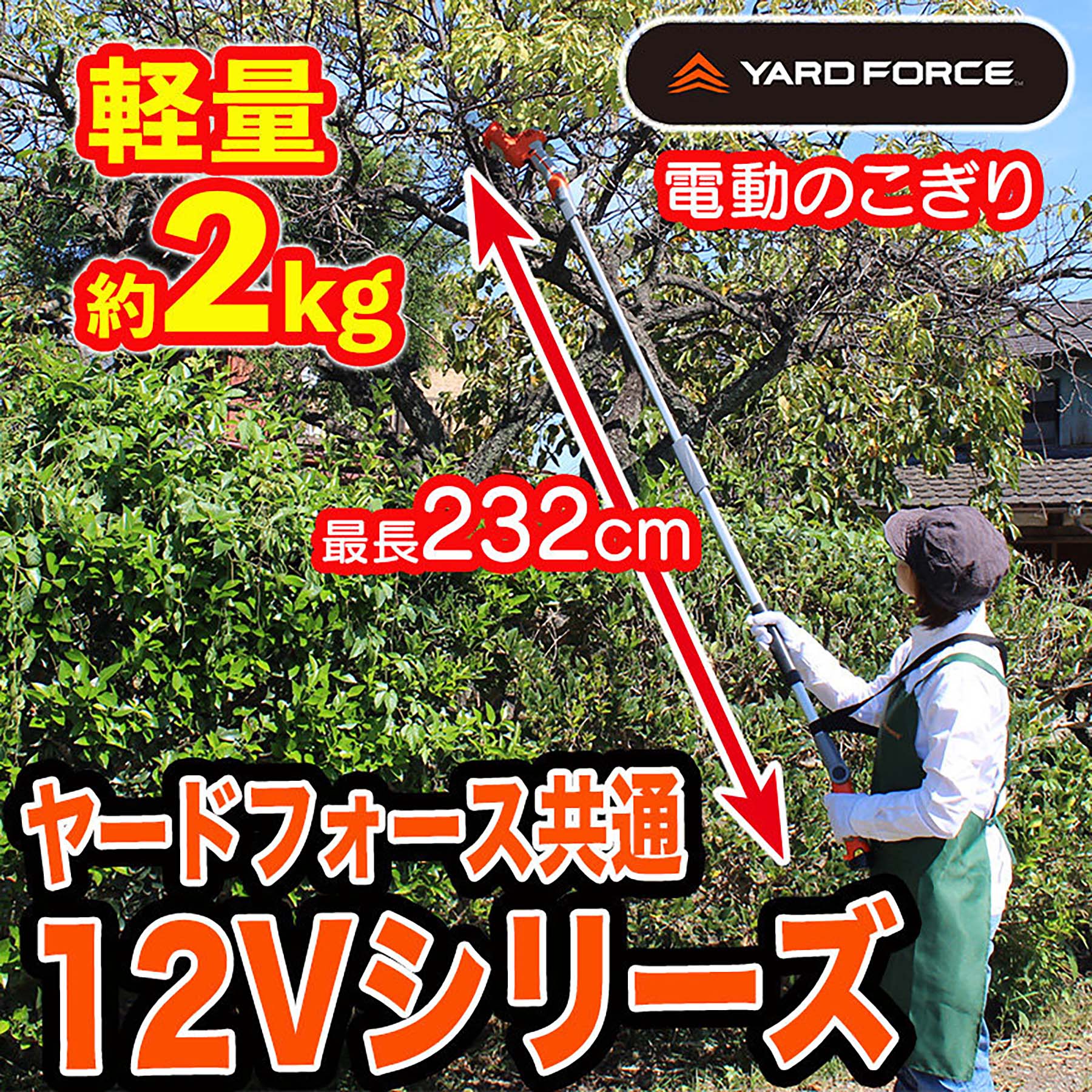 ●『YARDFORCE 12Vコードレス2WAY電動のこぎり 家庭用 充電式』は、大人気ヤードフォース高枝電動のこぎりの手軽に使える12Vシリーズ製品です。