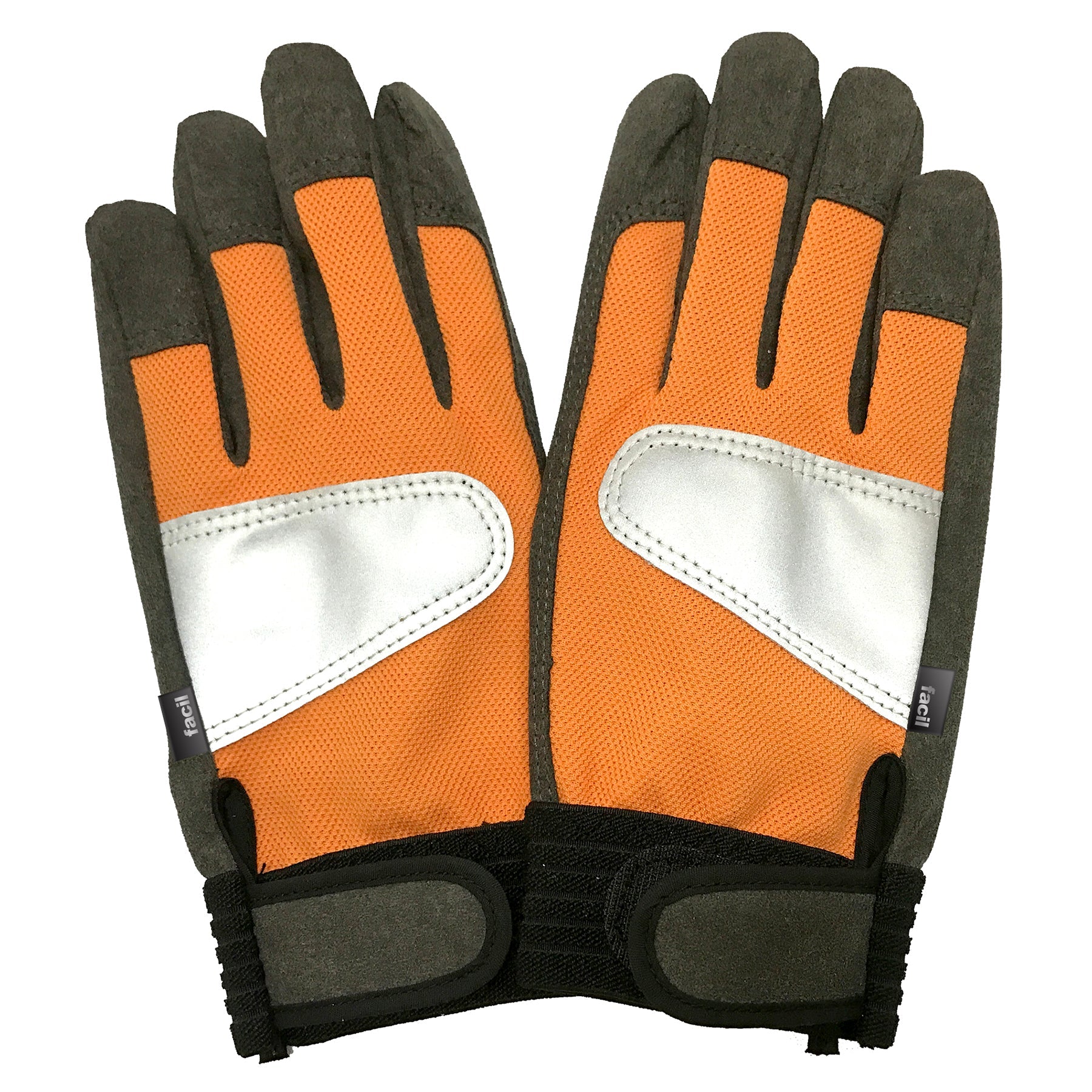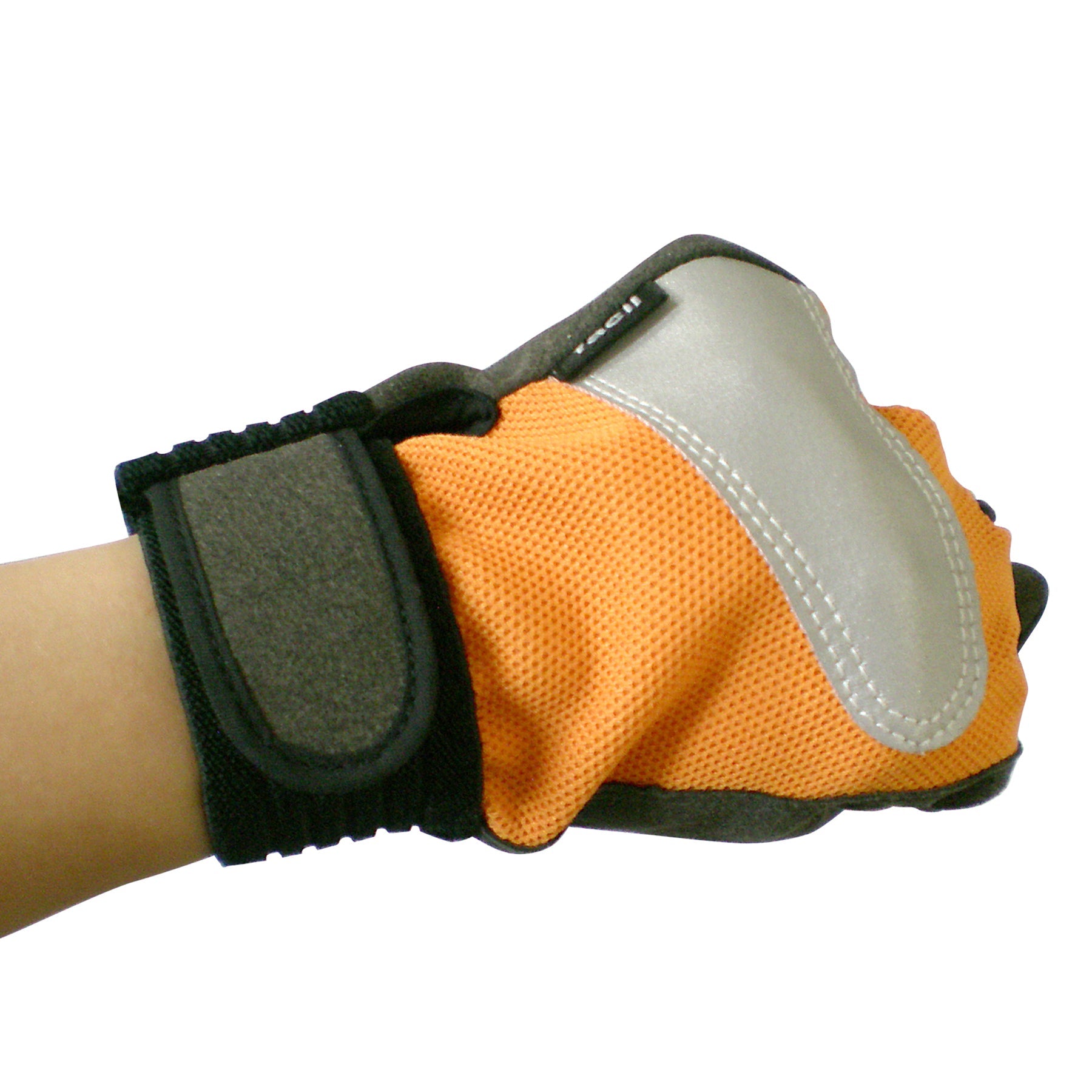 甲部:ポリエステルメッシュ、反射材、掌部:人工皮革(0.7mm)、袖口:パイルゴムマジック止め式 |