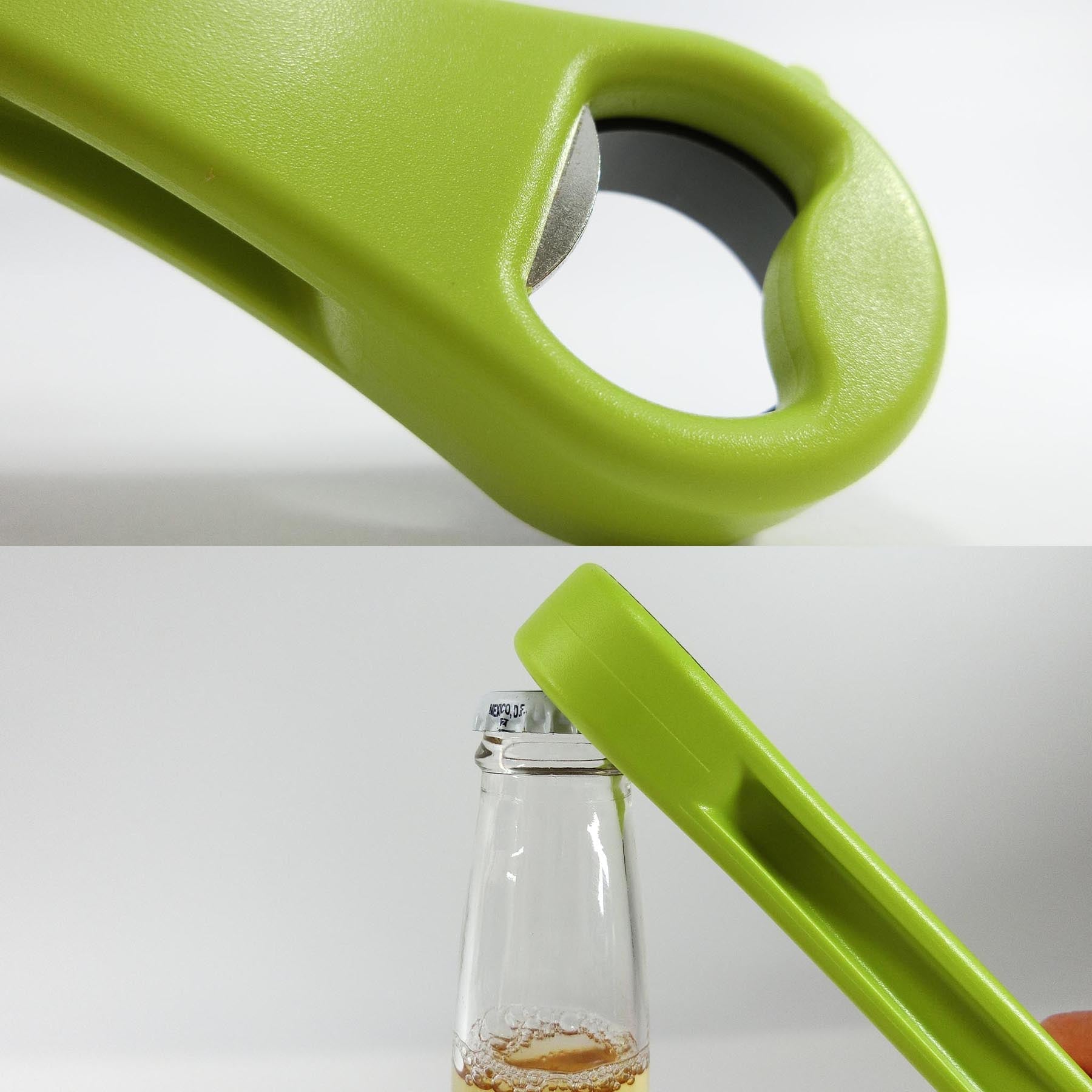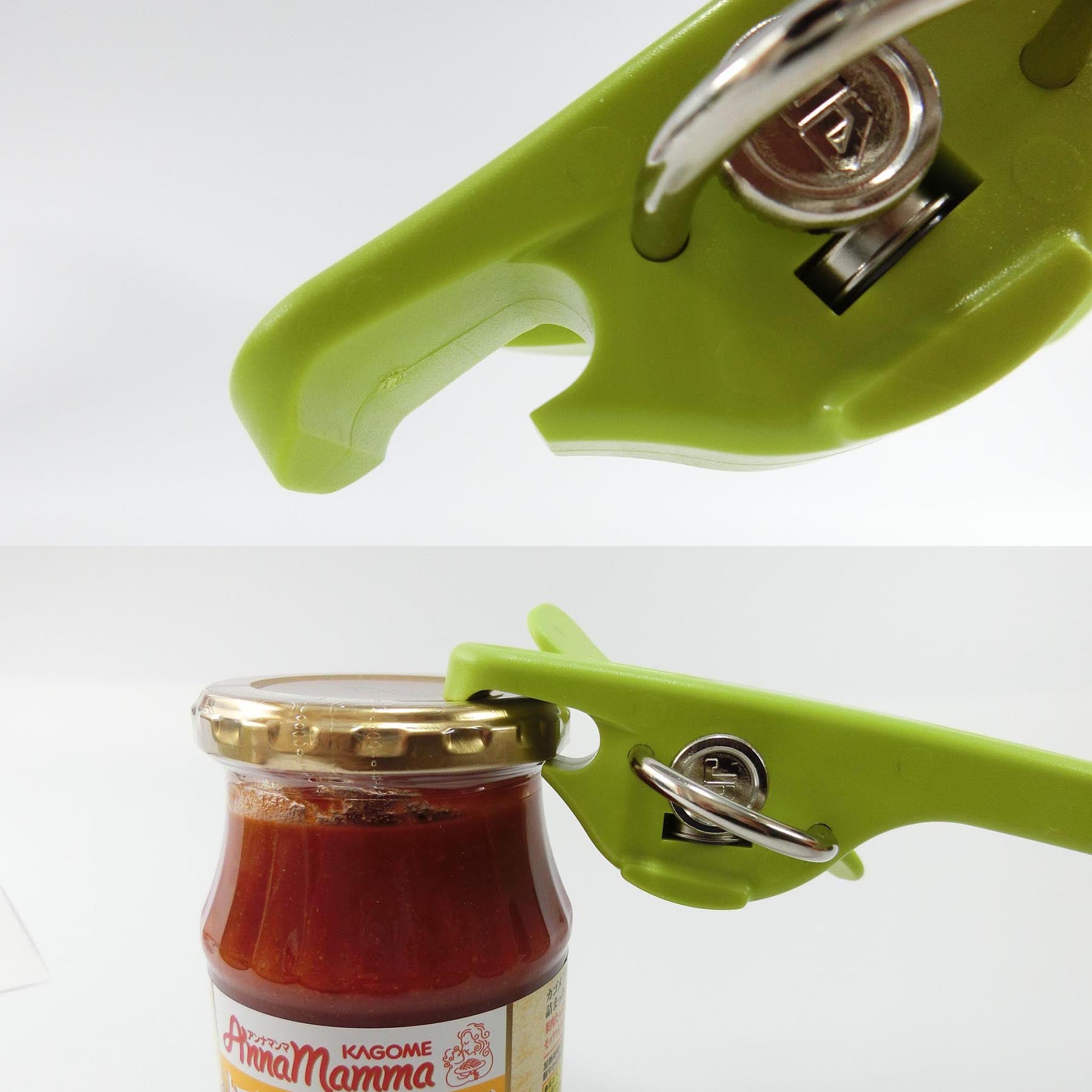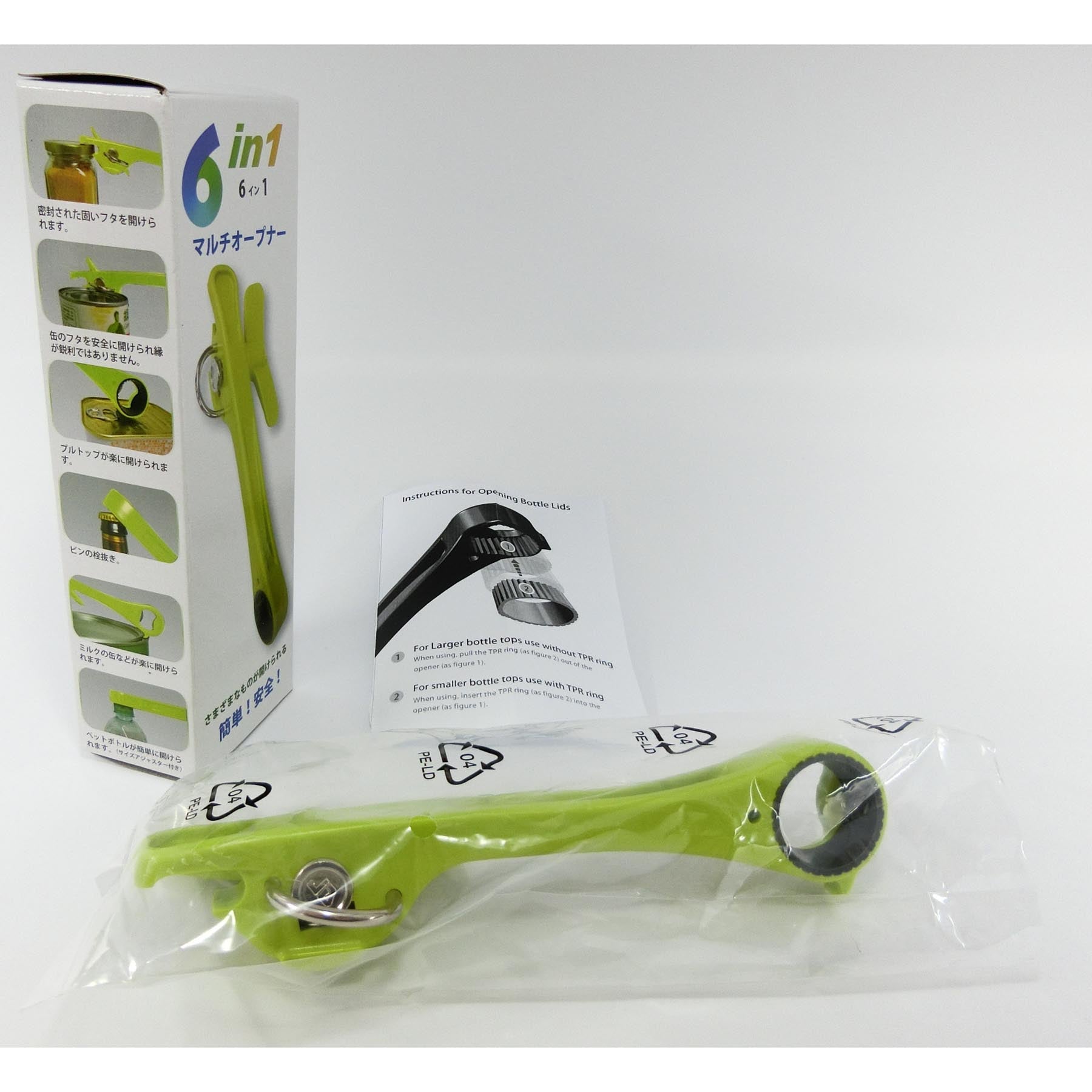 ●『6in1マルチオープナー』は、缶切り、ビン、缶オープナー、プルトップ、栓抜き、ペットボトル(大きさの異なる2種のふたに対応可能です) の6種類の容器の硬いふたを、力を入れずに簡単に開ける事ができるマルチオープナーです。